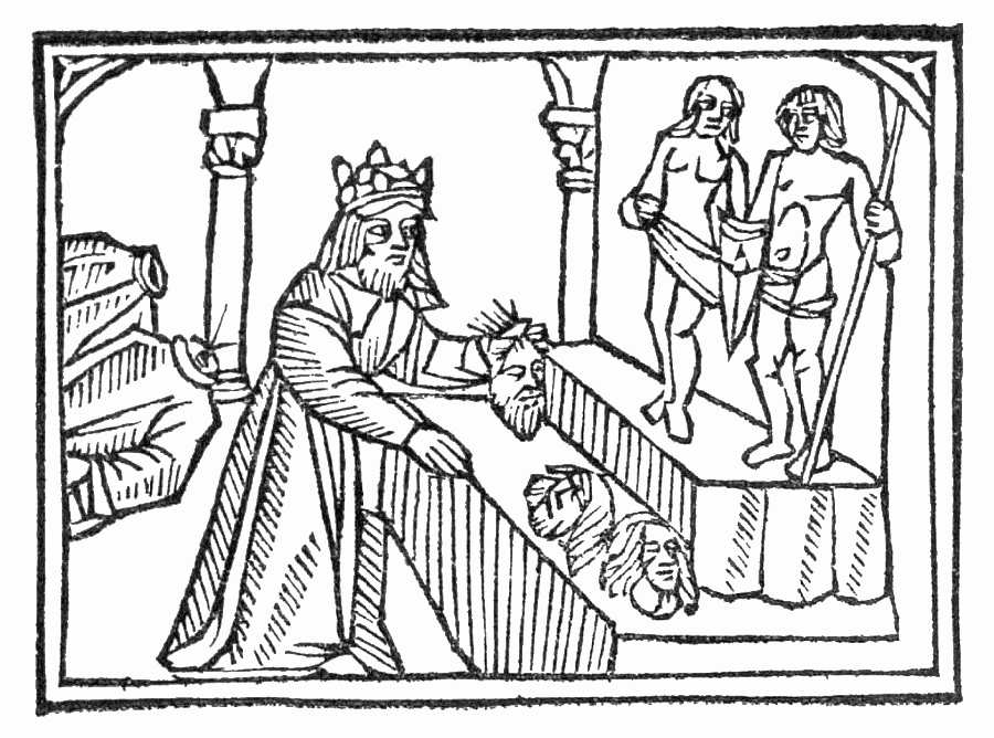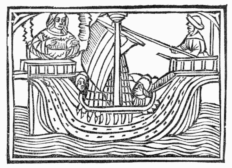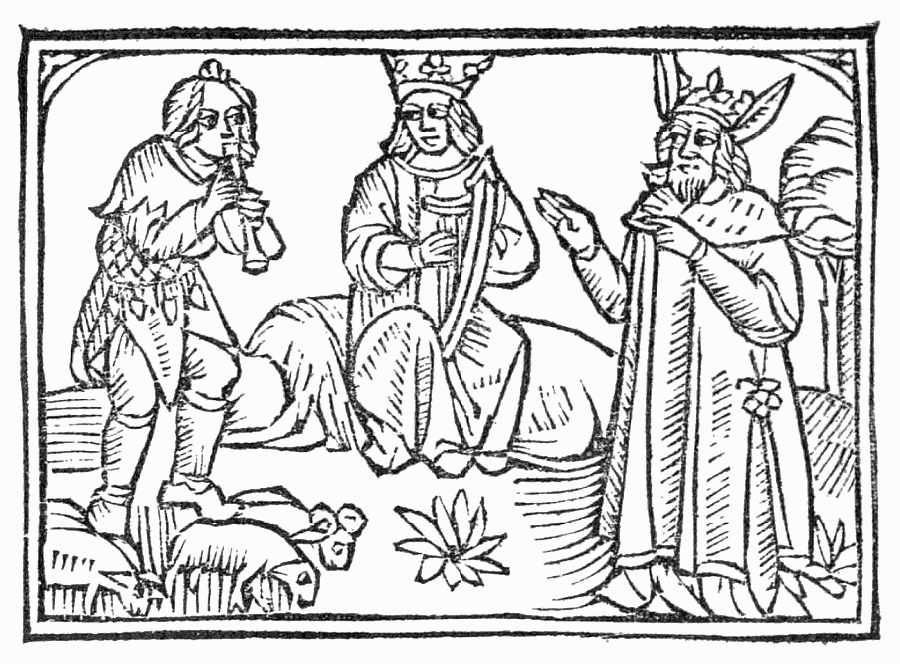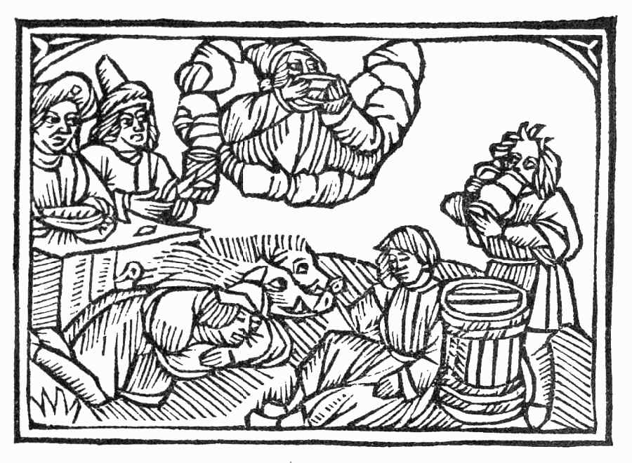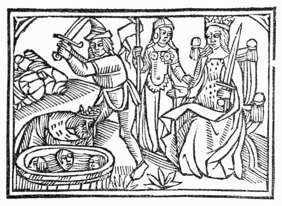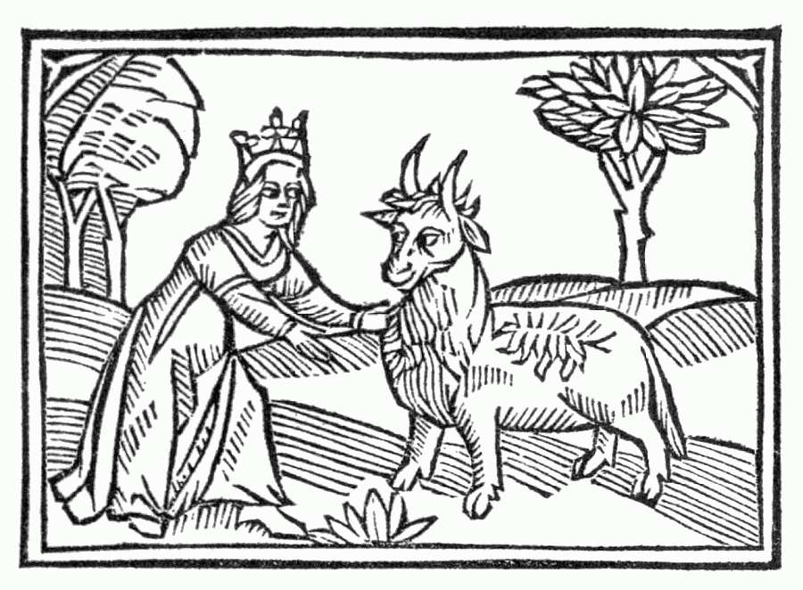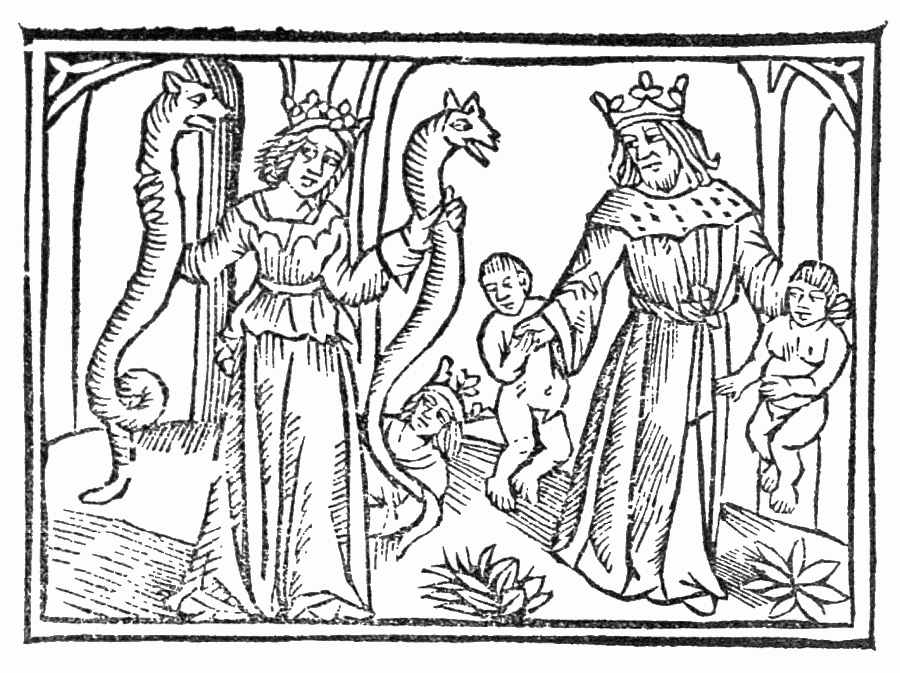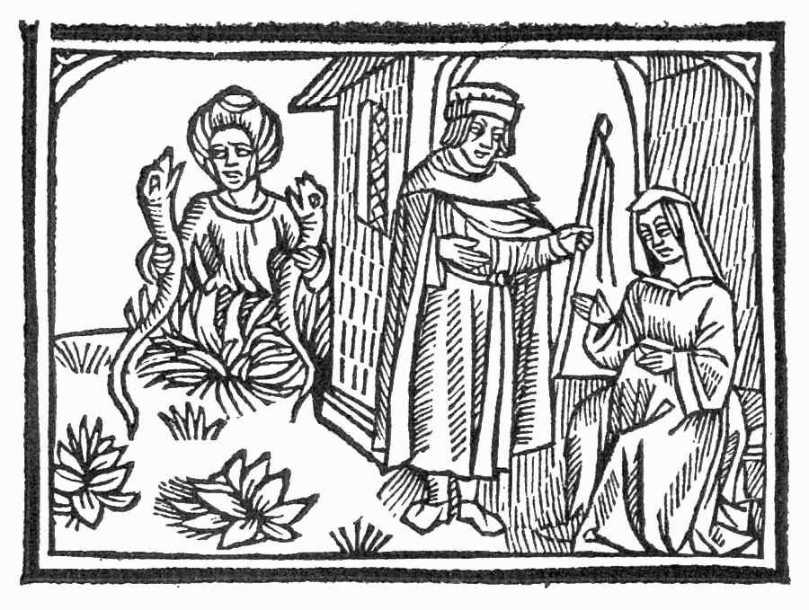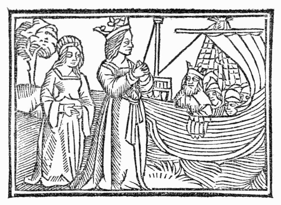 Circés fut une royne qui avoit son royaulme sur la mer d’ytalie & fut moult grant enchanteresse & trop sceut de sors & de annoncemens/ & quant ulixés qui par mer alloit apres la destruction de troye sicomme il cuydoit retourner en son pays par maintz grans tormentz & perilleux qu’il avoit euz fut arivé au port de celle terre/ il manda a la royne par ses chevaliers se il pourroit seurement prendre port sur sa terre. Circés moult beau accueillyt les messagiers & par semblant de courtoisie leur fist tendre bruvaige moult delicieux a boire mais telle vertu avoit par poison que soubdainement furent les chevaliers muez en porcz.