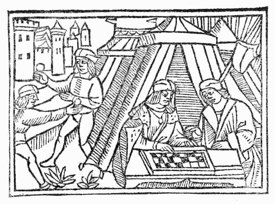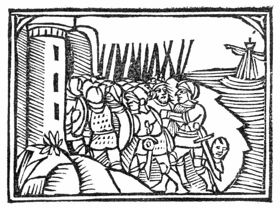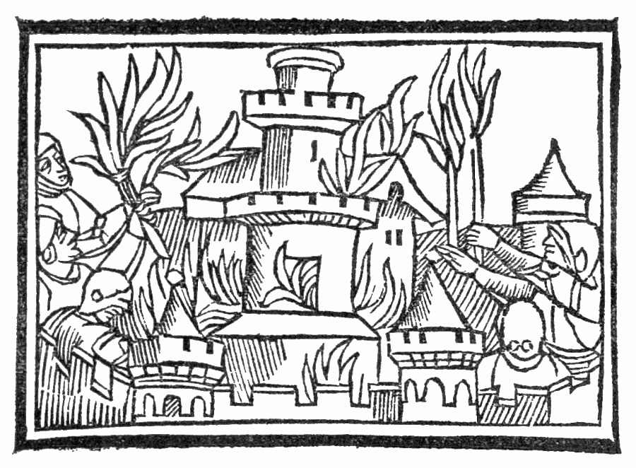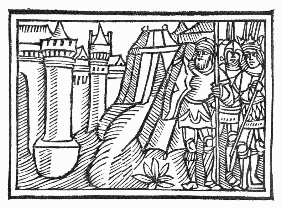 Les gregois firent paix par faintise aux troyens par la traïson Anthenor ilz dirent que ilz avoient voué ung don a minerve/ la deesse qu’ilz vouloient offrir : et avoient fait faire ung cheval de fust de merveilleuse grandeur lequel estoit plain de chevaliers armez & tant fut grant que la porte de la cité convint rompre pour eulx entrer & sur roes estoit assis le cheval que ilz trainerent jusques au temple/ et quant la nuit fut venue adoncques saillirent hors les chevaliers qui ceulx de dehors mirent en la ville qui toute la gent occirent et ardirent & destruirent la cité. Pour ce dit au bon chevalier qu’en tel faintise ne en tel offrende ne doit fyer. Ad ce propos dit le sage. On doit doubter les soubtillitez et les engins de son ennemy s’il est sage/ et s’il est fol sa mauvaitie.