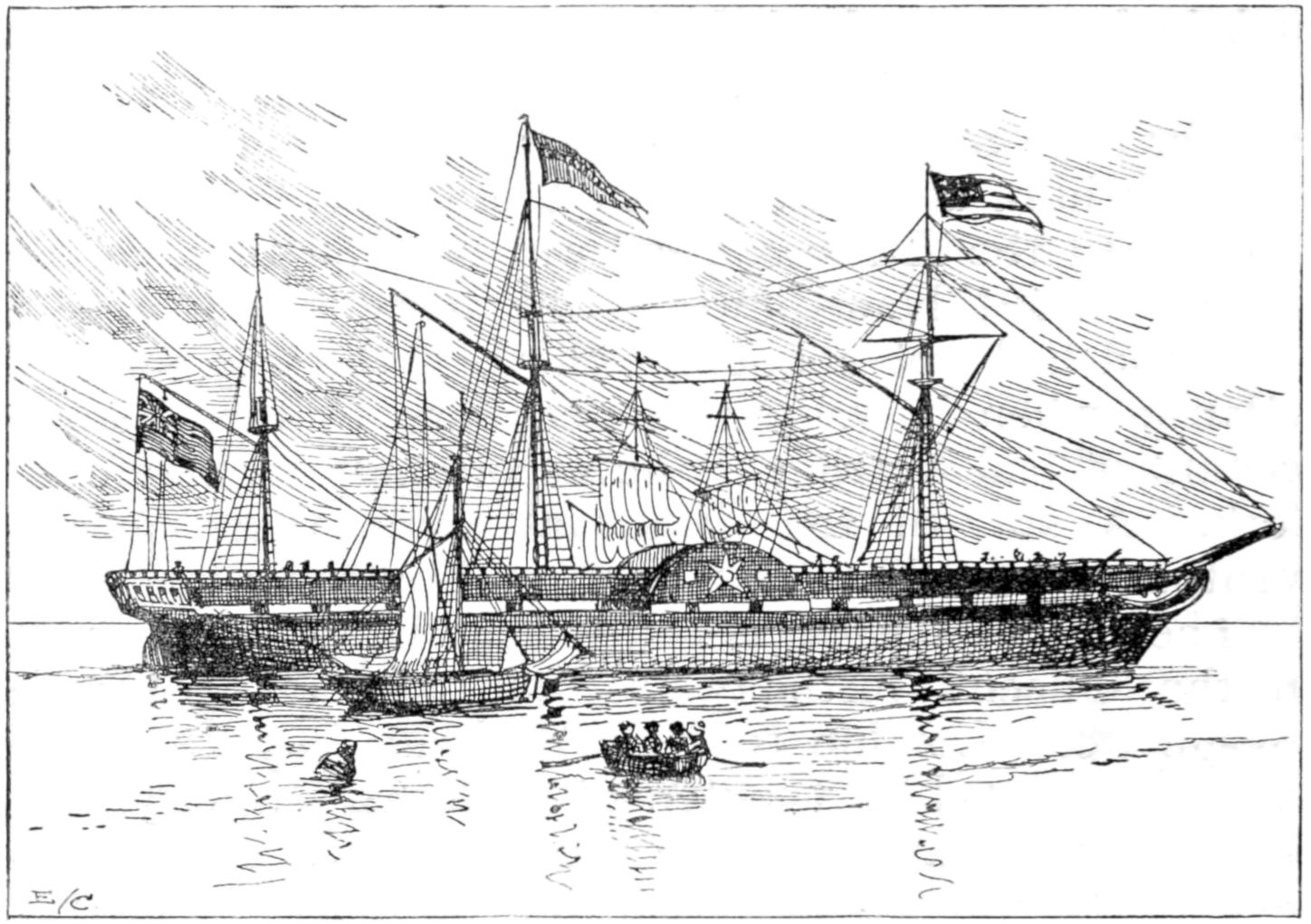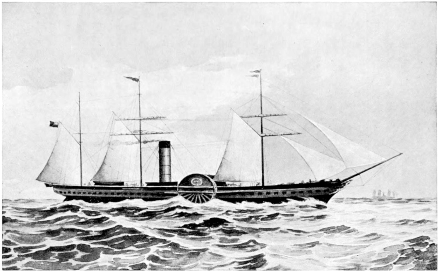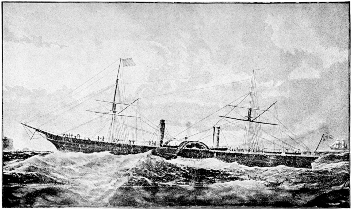 The absence of funnels and the presence of two large paddle-boxes made her one of the most extraordinary vessels ever seen. She made one slow journey across the Atlantic to Liverpool and back to America, and after another set of caloric engines had been tried in her with about as much success, in regard to her speed, as the first, she was fitted with engines of the ordinary type.