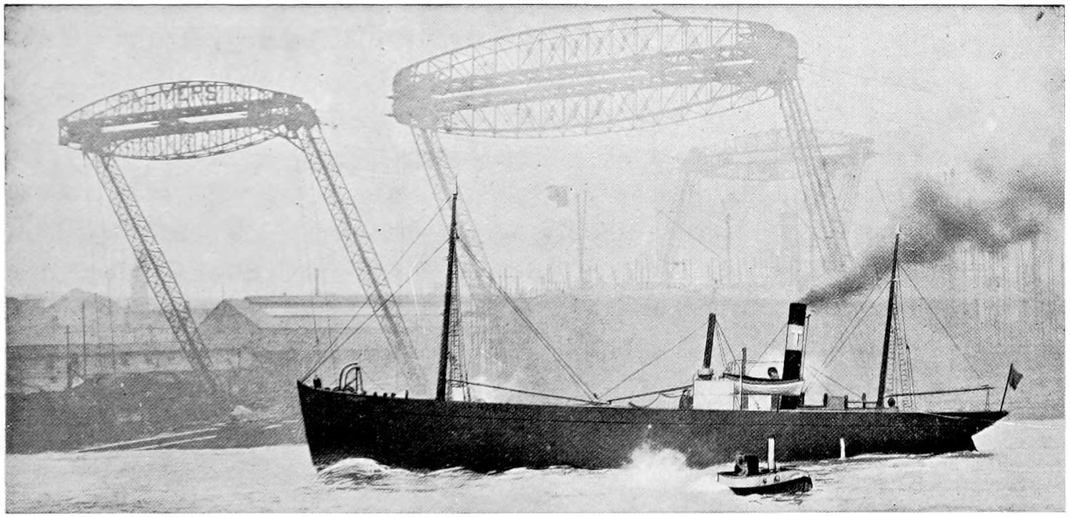The only sea-going railway ferry-steamer in existence is the Drottning Victoria, launched in January 1909 from the Neptune Works of Messrs. Swan, Hunter, and Wigham Richardson, Ltd., to the order of the Royal Administration of the Swedish State Railways. She was built to ferry trains across the Baltic, between Sassnitz in Germany and Trelleborg in Sweden, a distance of 65 nautical miles. High sea-going qualities were necessary as the voyage is[366] occasionally a very rough one. The vessel is 354 feet in length by over 50 feet beam, and is propelled by twin-screw triple-expansion engines, supplied with steam from four large boilers working under Howden’s system of forced draught. The trains are carried on two tracks on the car deck, occupying nearly the whole surface of the deck. Above and below this deck is very luxurious passenger accommodation. The vessel has been designed to be very steady at sea, and has unusually large bilge keels fitted to minimise the rolling. Spring buffers and other necessary appliances are arranged to prevent the cars from moving when at sea. A bow rudder is fitted as well as the stern rudder, and both are controlled by steam from the captain’s bridge. The steamer has been divided into a very large number of water-tight compartments, which, with the bulkhead doors with which she is fitted, render her practically unsinkable. She is also to be fitted with a submarine signal installation. The ventilating and heating are ensured by an installation of thermo tanks, enabling fresh, warm air to be forced into all the rooms in winter and fresh cool air in summer. Her speed is over 16 knots per hour, and the journey is made within four hours.
