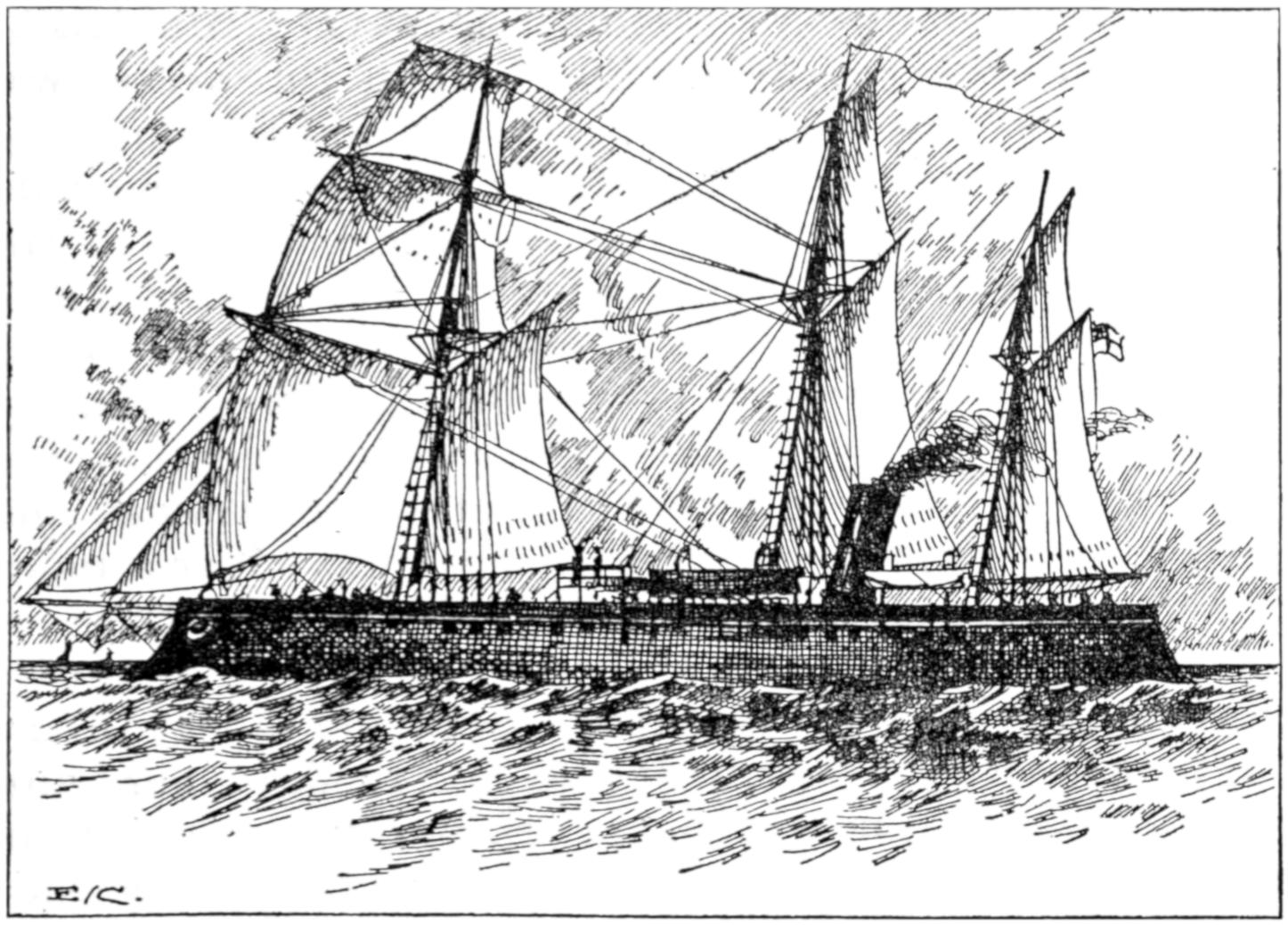 In the days when the Papal States were a power in the land and his Holiness was not a voluntary prisoner in the Vatican, the then occupant of St. Peter’s chair was the possessor of a very fine armed screw steam-yacht, the Immacolata Concezione. She was built by the Thames Iron Works and Shipbuilding Company, with engines by Messrs.[373] J. Seaward and Co. of Millwall. She carried eight brass 18-pounder guns, and was a three-masted full-rigged ship of some 627 tons burden. The engines were of 160 nominal horse-power and 300 indicated, and were capable of giving her a speed of 13 knots an hour.