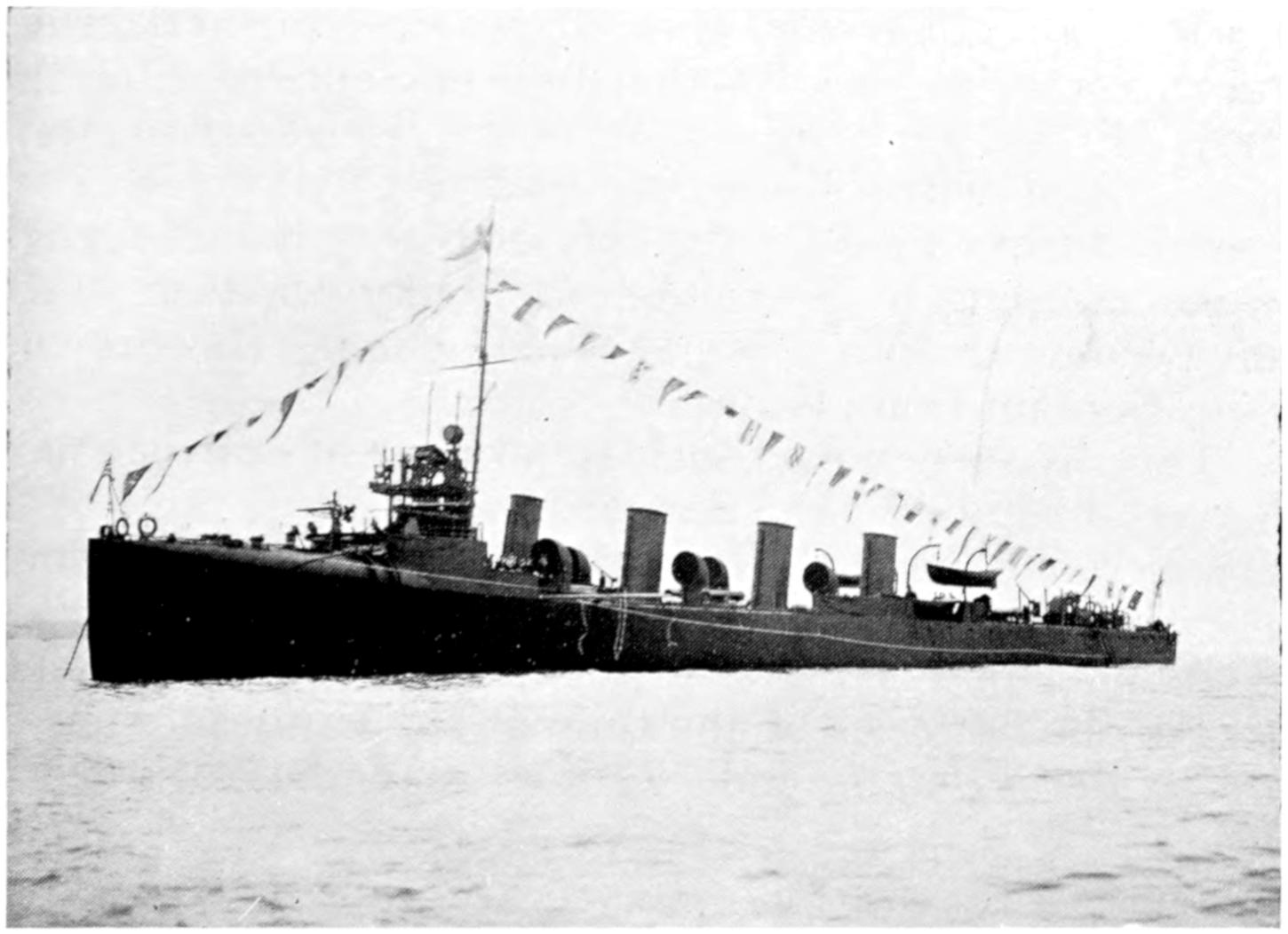 As private yacht-owning is a pastime in which only the wealthy can indulge, and as almost all private yachts are built to suit the fancy of their owner, a considerable individuality is displayed by them. They range in size from vessels not bigger than a ship’s boat to ocean-going liners. The Winchester, the latest boat of her class yet devised, is a triple-screw turbine yacht, bearing a strong resemblance to a torpedo boat. Her dimensions are: length 165 feet, breadth 15³⁄₄ feet, depth 9³⁄₄ feet, and displacement 180 tons. She was built in 1909 for Mr. W. P. Rouss, a prominent member of the New York Yacht Club, by Messrs. Yarrow and Co. of Scotstoun. The propelling machinery consists of three Parsons marine steam turbines constructed by Messrs. Yarrow. She has two Yarrow water-tube boilers, and her furnaces are fitted to burn oil fuel. The hull is of steel. At her trials at Skelmorlie she easily maintained a speed of 26³⁄₄ knots, which was ³⁄₄ of a knot in excess of the speed stipulated in her building[375] contract; and it was believed that a much higher rate could have been achieved, as 250 lb., the full working pressure of her boilers, was not reached, the high pressure of her high-power turbine being only 160 lb.
