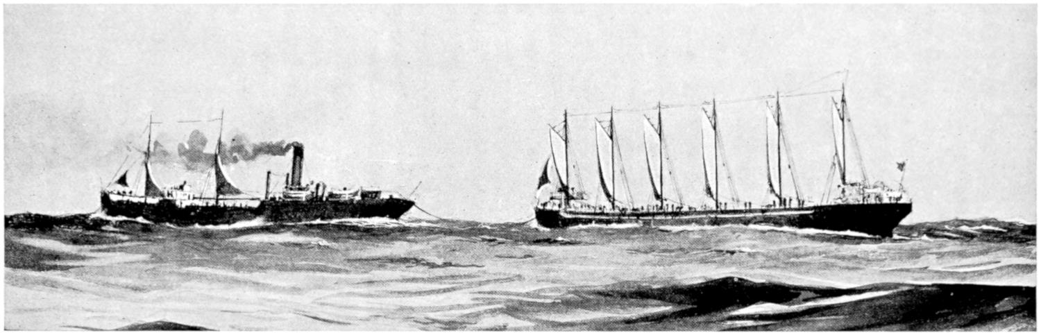 | From a painting by Charles Dixon; by kind permission of the Peninsular and Oriental Steam Navigation Co. | |||