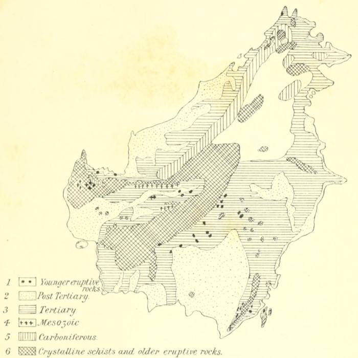 | The Geographical and Geological Features of Borneo: Arrangement of mountains—The geology of the “Mountain-land,” Palæozoic—Mesozoic—the geology of the “Hill-land,” Cainozoic—The geology of the Plains, Quaternary—The geology of the Marshes, Alluvium—Recent volcanic action. A Sketch of the Ethnography of Sarawak: Punans—Various agricultural tribes of Indonesian and Proto-Malay stock—Land Dayaks—Kenyahs and Kayans—Iban (Sea Dayaks)—Malays—Sociological History of Sarawak—Chinese traders | Page 312-329 |