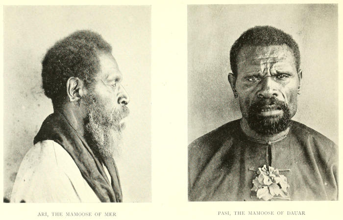 In the course of the following pages I often refer to Mr. John Bruce, the Government Schoolmaster on Murray Island. It would be difficult to exaggerate the influence he exerts for good by his instruction, advice, and unostentatious example. His help and influence were invaluable to us, and when our researches are finally published, anthropologists will cordially admit how much their science owes to “Jack Bruce.”