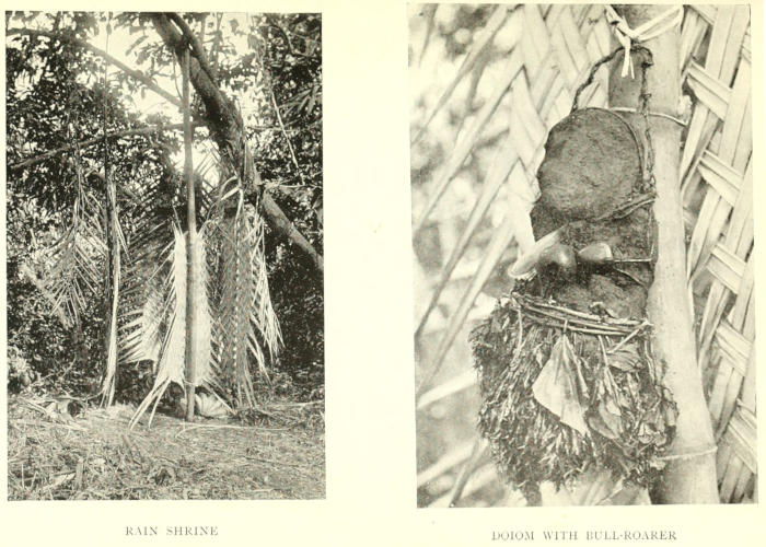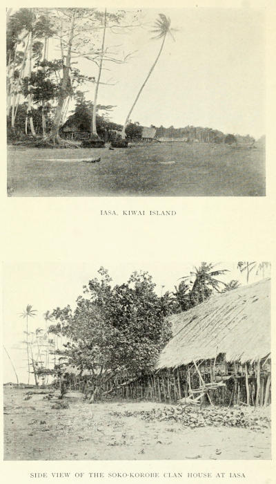| Leave Murray Island in the Nieue—Daru—Arrive at Saguane—Mission-work—Visit Iasa—Long clan houses—Totems and totemistic customs—Bull-roarers and human effigies as garden charms and during initiation ceremonies—Head-hunting—Stone implements—Origin of Man—Origin of Fire—Primitive dwellings at Old Mawatta—Shell hoe—Katau or Mawatta—Election of a chief—A love story—Dances—Bamboo beheading-knife | Page 95-116 |