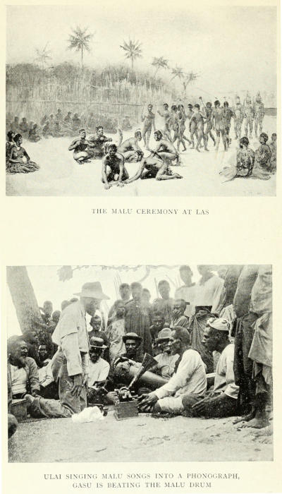 | Initiation ceremonies—Secret societies—Visit to Las—Representation of the Malu ceremonies—Models of the old masks—The ceremonies as formerly carried out—“Devil belong Malu” | Page 42-52 |