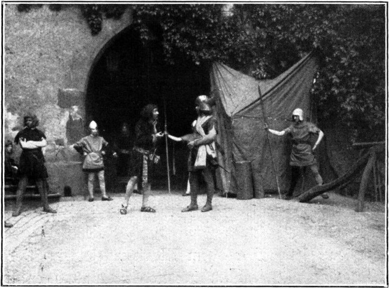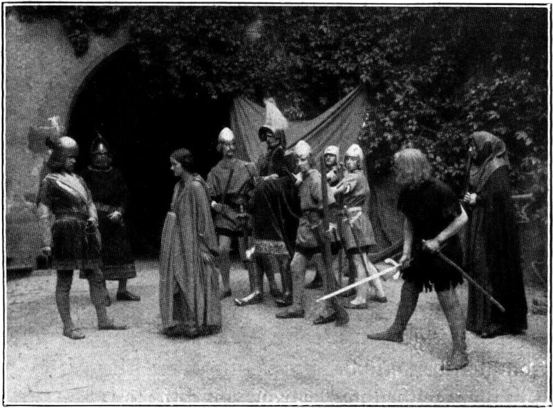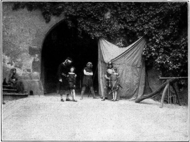 Ein weithin leuchtendes Beispiel dieser Gesinnung haben im letzten Sommer Herr und Frau von Arnim auf Kriebstein gegeben, indem sie ihre Burg, und zwar nicht nur den Burghof, sondern auch den größten Teil der Innenräume für ein Volksfest großen Stils herrichteten und einer nach vielen Hunderten zählenden Menge von Gästen öffneten. Sechs ländliche Hausfrauenvereine der Umgegend von Döbeln und Waldheim hatten sich zusammengeschlossen, um ihren Mitgliedern dieses außergewöhnliche Fest zu bieten und hatten bei der Schloßherrschaft feines Verständnis für den ganzen Plan und opferwilliges Entgegenkommen gefunden. Nach monatelangen Beratungen und wochenlangen Proben, bei denen das Mitglied des Leipziger Schauspielhauses Dr. Brauer und der in der dramatischen Kunst wohlerfahrene Student Görner als Regisseure dienten, kam endlich der große Tag, an dem alles von Stapel lief, Sonntag der 5. Juli. Am Morgen schien es, als ob Regen und Gewitter den Verlauf des Festes stören würden, aber als der Mittag nahte, stand die Sonne klar und golden am Firmament. Es war ein heißer Tag, aber trotzdem sah man auf allen Wegen festliche Scharen zum Kriebstein ziehen. Er hat schon an und für sich eine starke Anziehungskraft, denn er ist nach Lage und Bauweise die schönste Burg des Sachsenlandes, der kein Geringerer als der große Arnold von Westfalen den Stempel seines Geistes aufgedrückt hat. (Abb. 1). Das Fest, das in diesem stimmungsvollen Gehäuse gefeiert werden sollte, erhöhte den Reiz. Schon um zwei Uhr war der ganze zwischen Palas und Wehrgang sich zum »Zwinger«[334] absenkende Burghof mit Gästen gefüllt. Da saßen auf Stühlen und Bänken, aber auch auf Brettern, die man auf stehende Fässer gelegt hatte, der adelige Rittergutsbesitzer neben dem bäuerlichen Knecht, die Fabrikarbeitersfrau neben dem Offizier der Reichswehr, der städtische Kaufmann neben dem Waldarbeiter als eng verbundene, durch gemeinsame Schicksale aufeinander angewiesene Glieder eines Volkes. Doch horch! – Trompetenton macht die laute Unterhaltung verstummen: die Harthauer Musikanten in Jägeruniform blasen den »Willekum« von den Türmen und Zinnen der Burg. Vier Pfarrer der Umgegend, als Mönche in braune Kutten gekleidet, singen vom Söller der Freitreppe ein feierliches Gloria in excelsis Deo. Dann[335] stürmt die Otzdorfer Jugend, braungebrannte Mädchen und Burschen, in phantastischer Kleidung, um den Zigeunerkarren geschart, mit Jauchzen und Tamburingeklapper durchs Tor und schwingt sich bei loderndem Feuer in wildem Tanze. Danach gebietet der Herold Ruhe und verkündet den Beginn des ritterlichen Spiels »Die treue Frau von Kriebenstein«, das den Mittelpunkt des Festes bilden soll. Eine alte Sage, die um den Burgfelsen webt, an die von den Weibern von Weinsberg erinnernd, war von Frau Valerie Friedrich-Thiergen, der begnadeten Dichterin des Jahresrings deutscher Festspiele »Von Bornkinnel über den Maienbaum zum Knecht Ruprecht« (Dresden 1925 Verlag des Heimatschutzes) für diesen Tag zum Volksstück umgedichtet worden und wurde von Verwandten und Bekannten der Burgherrschaft unter Mitwirkung der beiden obengenannten Herren mit den denkbar einfachsten Mitteln aufgeführt. In der von unten gesehenen rechten oberen Ecke des Hofes stand das Zelt, von dem aus Markgraf Friedrich der Streitbare die Belagerung des Kriebsteins leitete. (Abb. 2). In dieser Burg hatte sich nämlich der Raubritter Staupitz festgesetzt und verübte von ihr aus schwere Ungebühr gegen die umwohnenden Bürger und Bauern. Der von ihm vertriebene rechtmäßige Burgherr, Dietrich von Beerwalde, hatte gegen ihn die Hilfe seines Lehnsherrn, des Markgrafen, angerufen. So deutete die echte alte Feldschlange vor dem Zelt das Heerlager an; die Krieger des Markgrafen aber traten, wie sie gebraucht wurden, aus dem Dunkel der Torhalle hervor, während Staupitz mit seinen Leuten etwas weiter abwärts in der Richtung, die die Feldschlange weist, im Wehrgange hausten. Außer dem Kriegsvolk ist im Lager des Markgrafen auch der Böhme Grabissa mit seinem Buben Wenzel. Grabissa hat vom Prager Hofe den geheimen Auftrag, dem Markgrafen seine Braut, die böhmische Prinzessin Anna, durch Verleumdungen zu verleiden (Abb. 3), damit der Markgraf freiwillig die Verlobung löse und der Böhmenkönig nicht die zehntausend Groschen zu zahlen brauche, die als Reugeld für die Versagung der Braut ausgemacht waren. Unterdessen wird die belagerte Burg sturmreif.