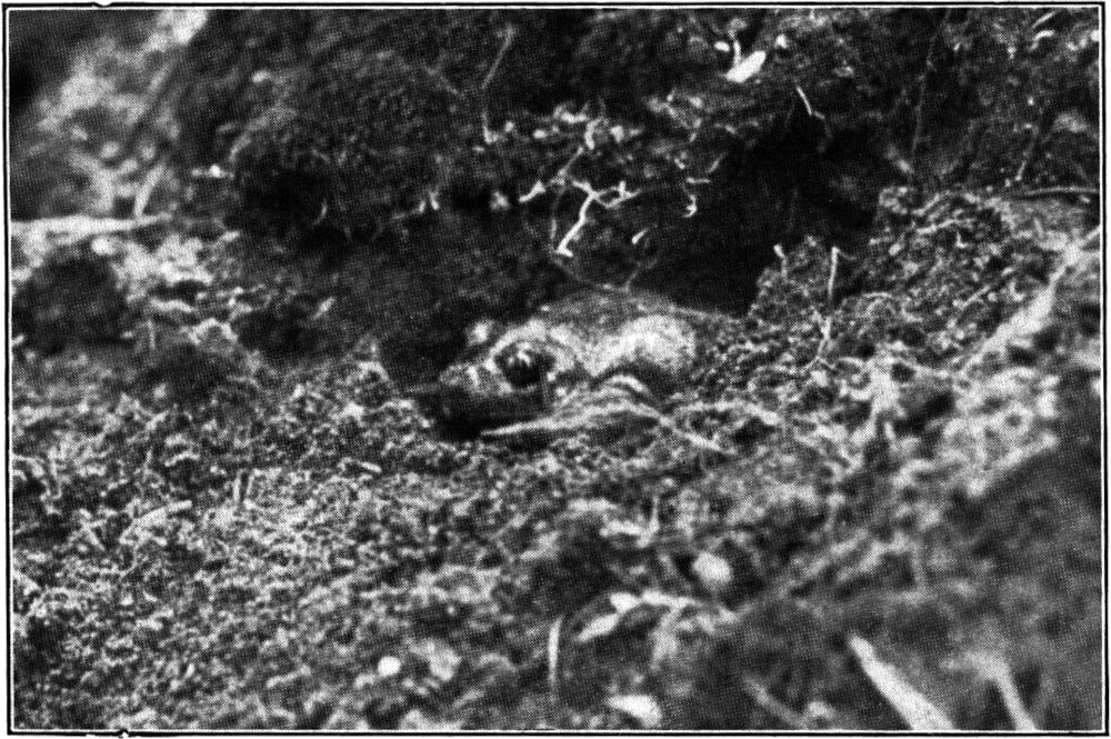Die drei Kröten sind äußerlich recht gut voneinander unterschieden und ihre sichere Bestimmung dürfte selbst dem Ungeübten keine großen Schwierigkeiten bereiten. Die Erdkröte, die verbreitetste und wohl überall gleich häufige der Sippe, ist von graubrauner, bald ins asch- und schwärzlichgraue, bald wieder ins gelblich- und oliven-graue und -bräunliche übergehender Farbe, die sich allmählich in den helleren Ton der Unterseite auflöst; die Grüne Kröte ist auf hellerem ledergelben bis gelbgrauen Grunde ziemlich dicht mit satten samt- bis grasgrünen Flecken[351] gezeichnet, von denen sich besonders an den Seiten und am Halse zahlreiche rote Wärzchen abheben, während die unterseits ebenfalls wieder in hellere Töne übergehende Farbe der Kreuzkröte ein bald mehr ins gelbliche oder graue, bald wieder ins braune übergehendes Oliv ist, durch das längs der Rückenmitte ein etwas vertiefter, schwefelgelber Streifen verläuft.