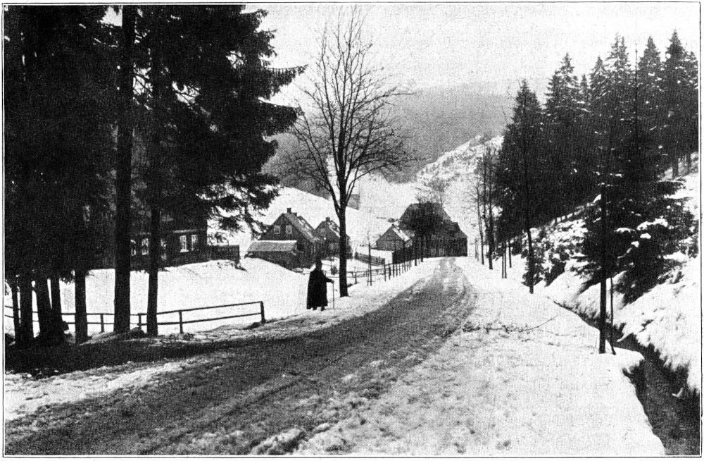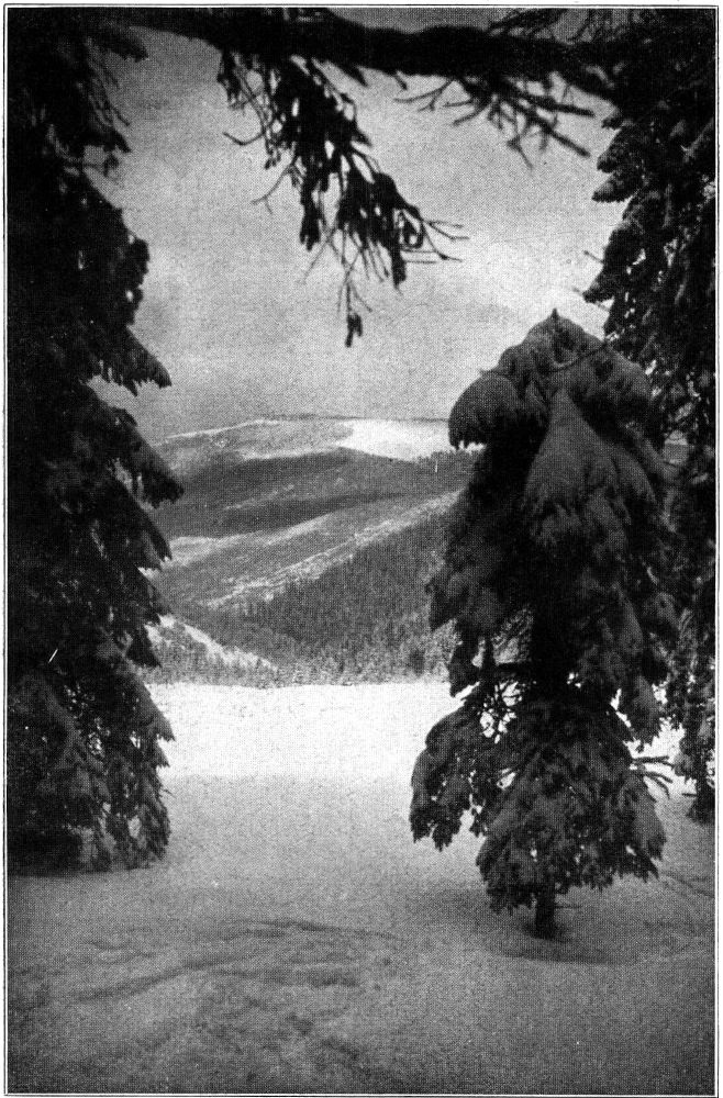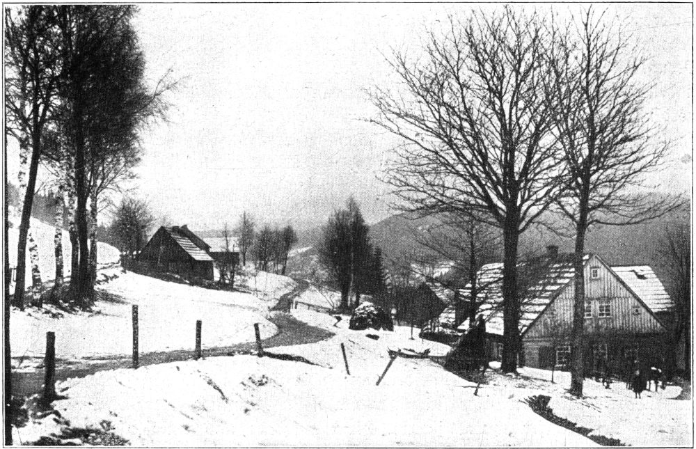 Außer den sieben Häuschen von Winselburg gibt es am Kiel keine Siedlung. Die blinkenden Fenster der allerobersten Hütte schauen weit hinaus nach Norden und Osten, hinüber zu den Waldbergen des westlichen Erzgebirges, auf Kuhberg und Auersberg (Abb. 7), die von hier aus bei starkem Schneebehang des Hochwinters nicht als graue Waldrücken erscheinen, sondern als leuchtendweiße Schneewände über tieferliegende dunkle Vorberge und Talgründe emporragen.