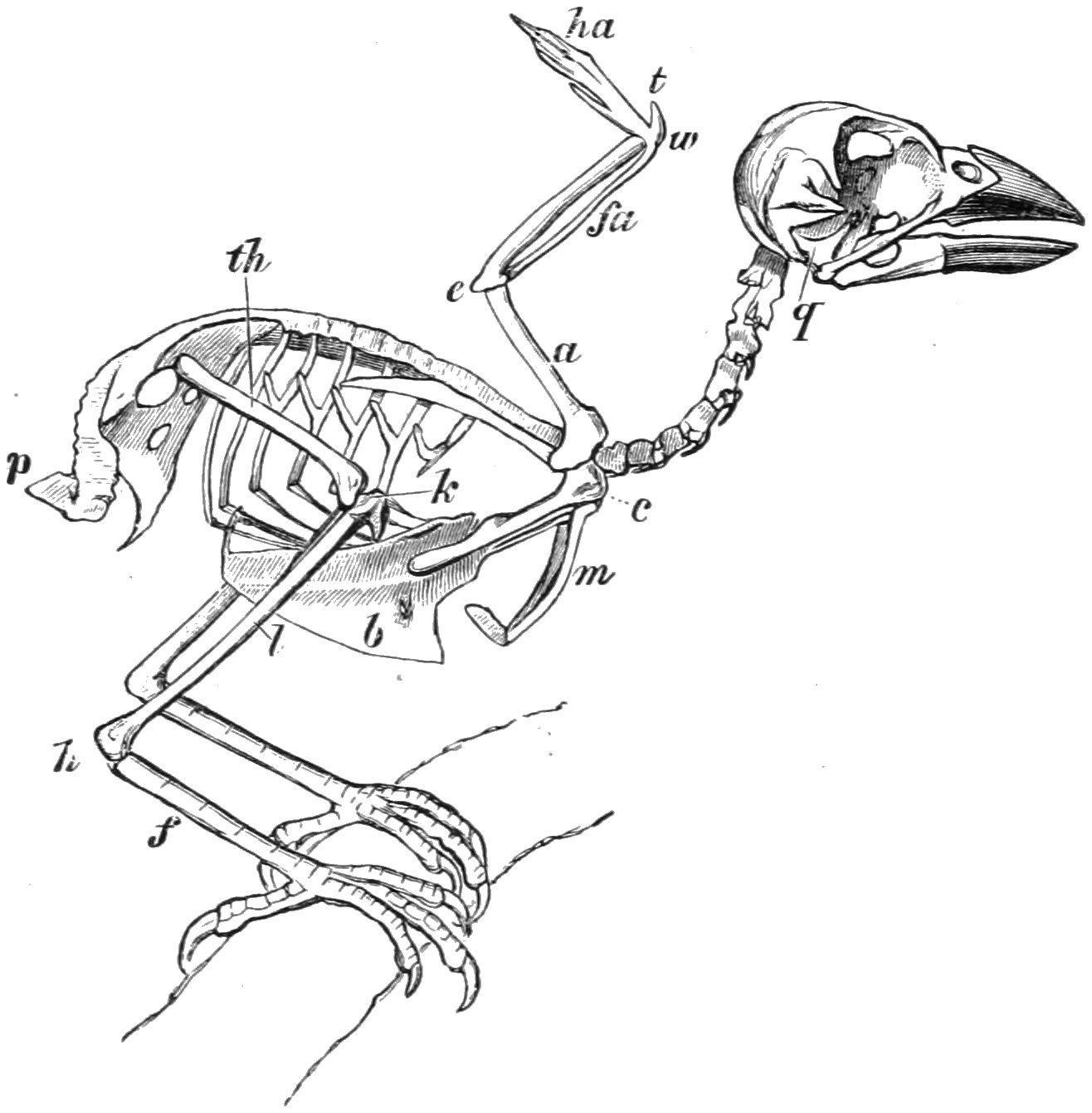 | Picture-Heading—Archæopteryx, the lizard-tailed land-bird with teeth. (Restored from figures of the British Museum and German specimens.) | |