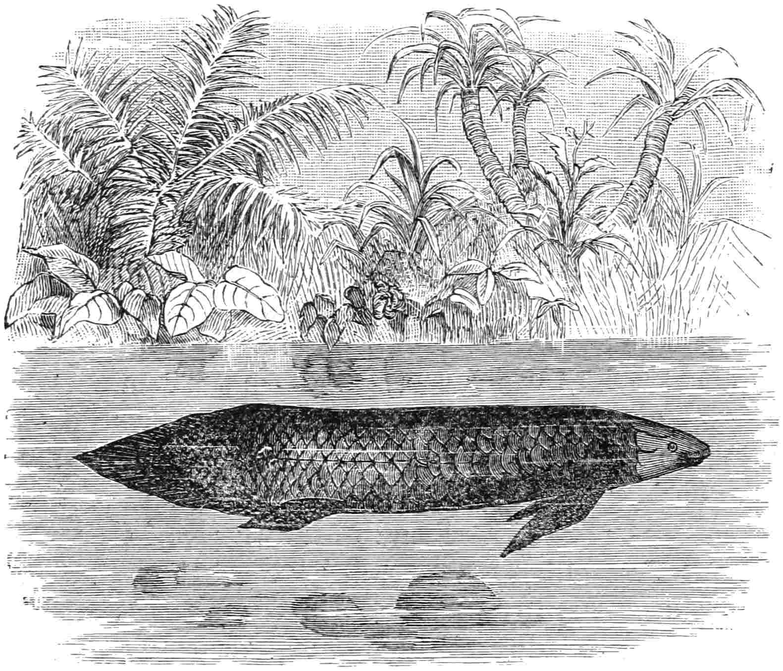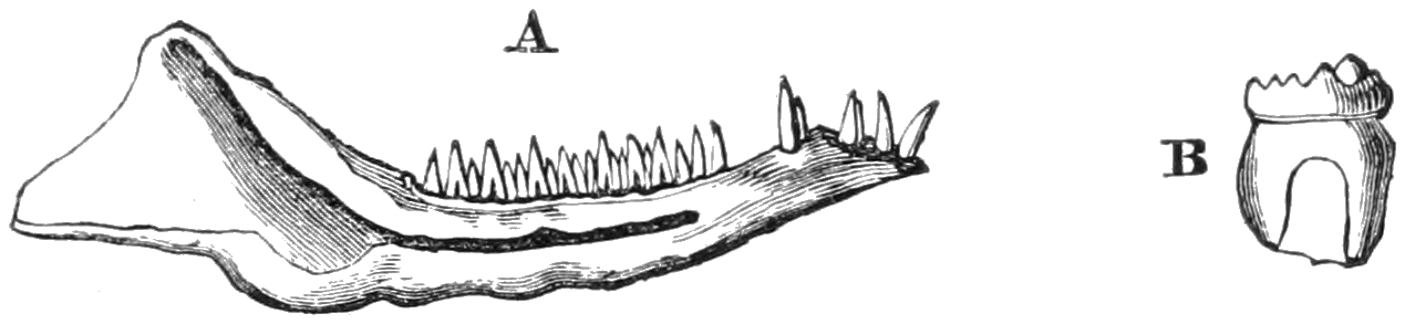 | Picture-Heading—Restorations of Osmeroides and Beryx, the earliest known bony fishes living in the Cretaceous Period. (From well-known figures.) | |