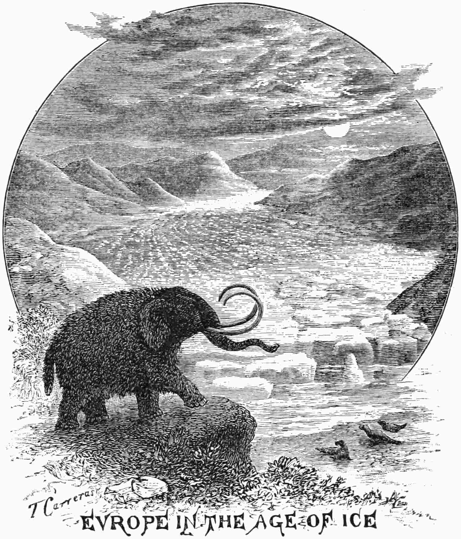| Picture-Heading—An ideal scene of Europe in the Glacial Period with the “Hairy Mammoth” in the foreground. | |