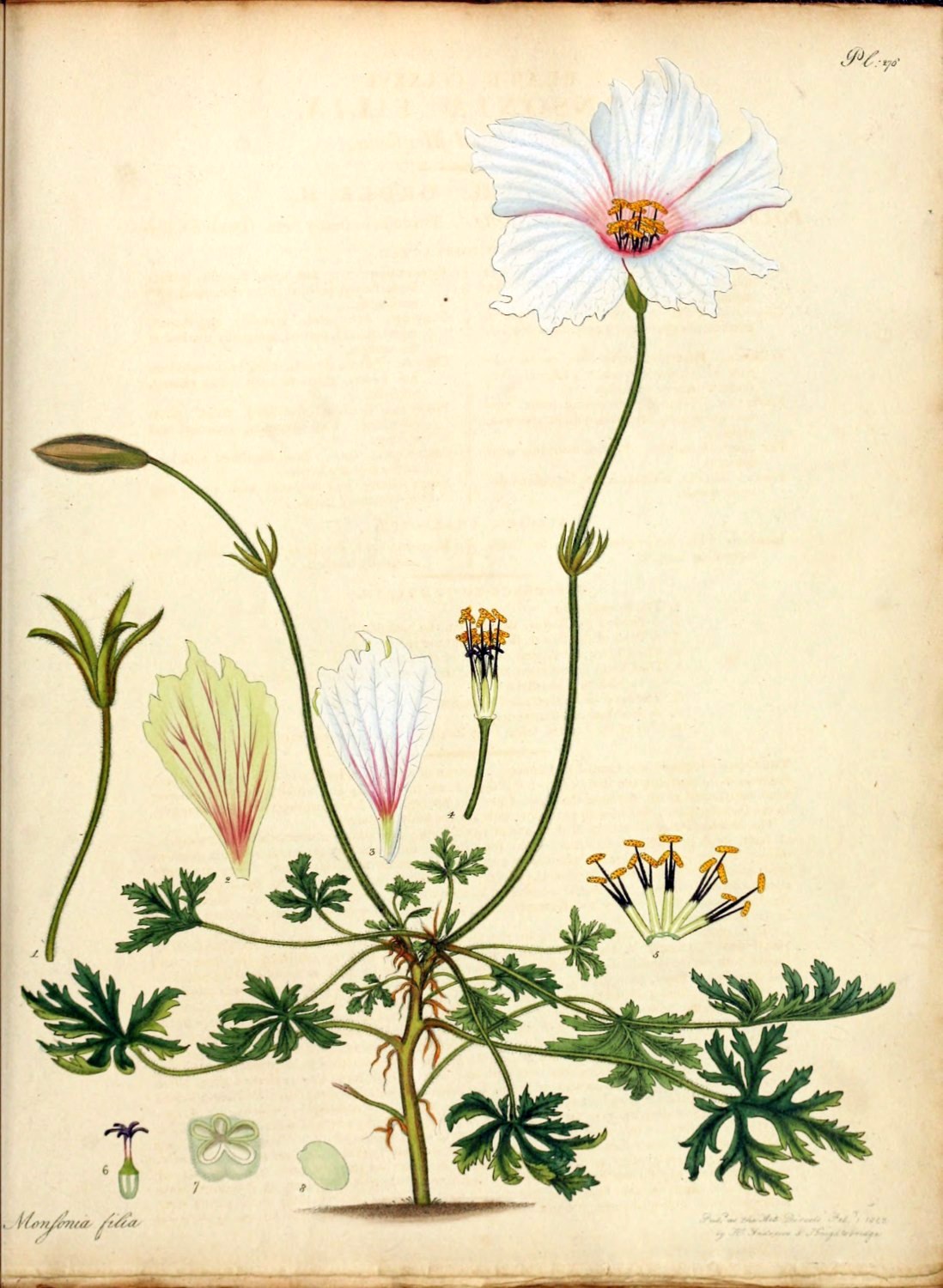 | 276 | Monsonia filia | Hairy-leaved Monsonia | G. H. | Herb. | July. | |