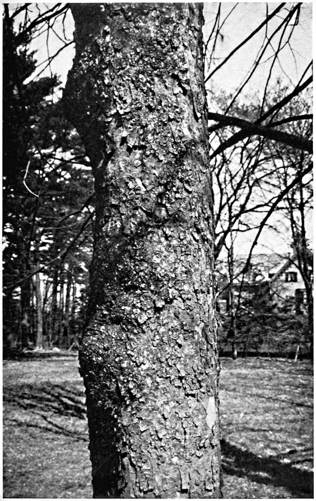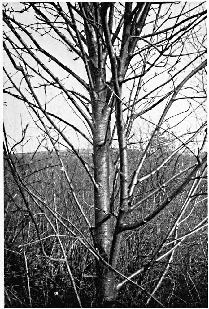 As distinctive in shape as the apple tree, but in striking contrast to it, the erect pyramidal head of the pear tree is easily recognized in winter, and its small, pointed buds and smooth stems offer other points of difference. Like the apple tree, the pear tree has been in cultivation for hundreds of years and there are innumerable varieties. It seems incongruous that so small a tree should live to a great age, but Bosc alludes to pear trees more than four hundred years old, and Knight tells of several which date back to the fifteenth century.
