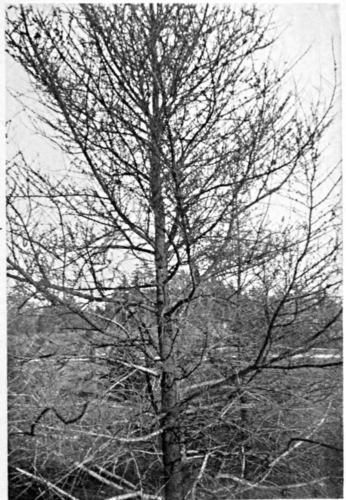During a brief interval in the early spring, when the first young leaves fringe the branches in delicate green, this tree is really lovely, but after that there is little to attract us in its stiff, formal outline and dark foliage, and in winter it is most unprepossessing.