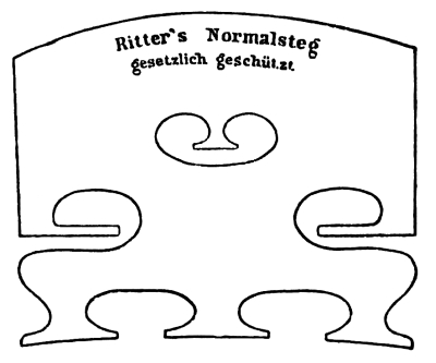 [1] With the same intention, Mr. E. J. Bonn, of Brading, Isle of Wight, has produced a four-footed bridge, which, upon the testimony of those who have tried it, has in some cases effected an improvement. Testimonials from great artists concerning these and other attempts at improving the violin frequently appear; meanwhile, the artists themselves are well content with the bridge and the instrument generally as left by Stradivarius. One would not desire to deny the possibility of further improvements to the instrument, yet nearly two centuries of ceaseless experimenting have yielded no result that has been considered worthy of universal adoption. Tr.