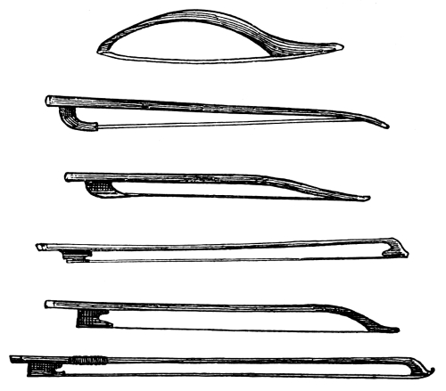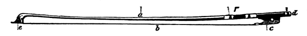 [8] Kid of reasonable substance gives a pleasant hold for the fingers, although wire is in greater favour with bow makers for appearance sake. But it is apt to tarnish and unravel, especially where the thumb comes in contact with it. Tr.