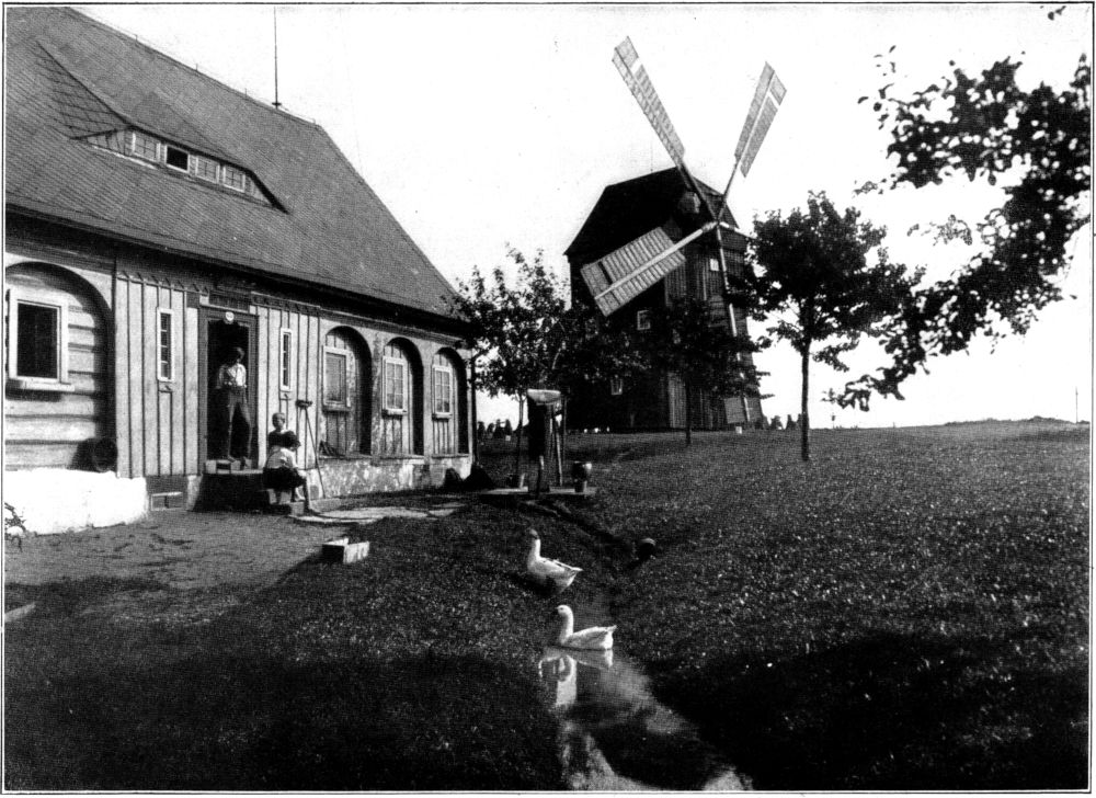 Auf die Frage, warum soviele Windmühlen »eingegangen« seien, erzählt der Windmüller vom Aufkommen der Dampfmühlen, daß viele Windmühlen zum[464] Aufstellen von modernen Mahleinrichtungen nicht geeignet gebaut waren, daß die Eisenbahn viel Mehl ins Dorf brachte und mit Wichtigkeit von schlechten Windjahren. Oft brachte der Bauer sein Korn erst zur Mühle, wenn er das letzte Mehl gerade verbrauchte. Nun sollte der Müller gleich mahlen. Ja, gern, aber der Wind blieb aus! Viele Bauern gingen zum Bäcker, der ihnen aus seinem Vorrat sogleich Brot und Mehl gegen ihre Körner eintauschte. Dadurch zogen die Bäcker die Bauern an sich. Der Windmüller hatte das »Zugucken«, er kam um seine Arbeit.