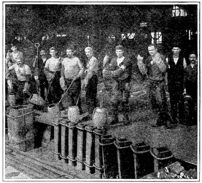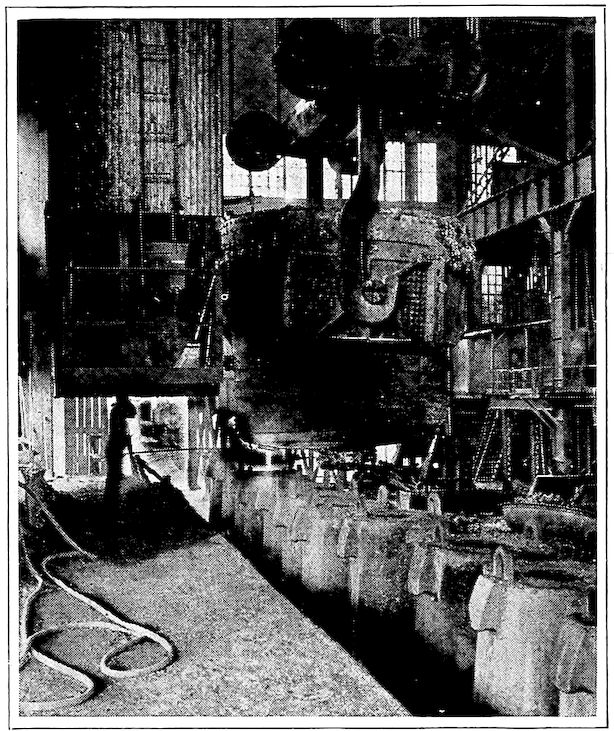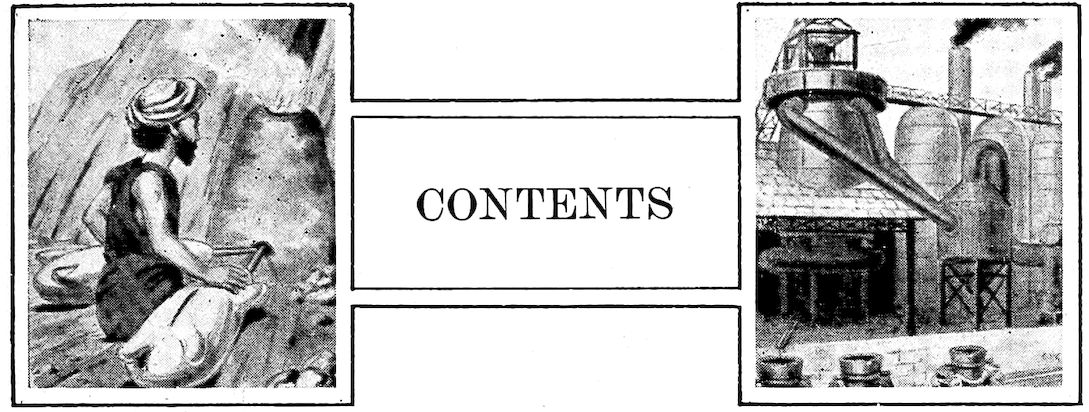 A. M. Byers Co., Pittsburg.—National Tube Co., Pittsburg.—U. S. Steel Corporation, New York.—Tennessee Coal, Iron & Railroad Co., Birmingham, Ala.—Shenango Furnace Co., Pittsburg.—Pickands, Mather & Co., Pittsburg.—United States Geological Survey.—Wellman-Seaver-Morgan Co., Cleveland, O.—Lackawanna Steel Co., Buffalo.—Cleveland-Cliffs Iron Co., Ishpeming, Mich.—J. H. Hillman & Sons Co., Pittsburg.—Harbison-Walker Refractories Co., Pittsburg.—By-Products Coke Corporation, Chicago.—H. Koppers Co., Pittsburg.—Federal Furnace Co., Chicago.—Crucible Steel Company of America, Pittsburg.—Crane Co., Chicago.—Interstate Iron & Steel Co., Chicago.—LaBelle Iron Works, Steubenville, O.—Morgan Construction Company, Worcester, Mass.—J. A. Matthews. Syracuse, N. Y.—McLain’s System, Milwaukee, Wis.—Allis-Chalmers Co., Milwaukee, Wis.—J. H. Williams & Co., New York.—Griffin Wheel Co., Chicago.—U. S. Molding Machine Co., Cleveland.—Bradley Manufacturing Co., Bradley, Ill. (Sears, Roebuck & Co., Chicago).—Snyder Electric Furnace Co., Chicago.—Commonwealth Steel Co., St. Louis.—John A. Crowley & Co., Detroit.—Illinois Steel Co., Chicago.—Pickands, Brown & Co., Chicago.—“Sketches of Creation,” by Alexander Winchell. Harper & Bros., New York.—“Descriptive Metallurgy of Iron,” by S. Groves.—“Materials of Engineering,” by R. H. Thurston. John Wiley & Sons, New York.—“Chambers’ Encyclopedia.” J. B. Lippincott, Philadelphia.—“Cast Iron in the Light of Recent Research,” by W. H. Hatfield. Charles Griffin & Co., Ltd., London.—“Handbook of Chemical Technology,” Wagner-Crookes. D. Appleton & Co., New York.—“The Ore Deposits of the United States and Canada,” by J. F. Kemp. McGraw-Hill Book Co., New York.—“The Valve World.” Crane Co., Chicago.—“The Romance of Steel,” by H. Casson. A. S. Barnes & Co., New York.—“The Metallurgy of Steel,” by Harbord & Hall. Chas. Griffin & Co., Ltd., London.—“Metallurgy of Steel,” by H. M. Howe. McGraw-Hill Book Co., New York.—Tomlinson’s “Encyclopedia of Useful Arts” (1854). G. Virtue & Co., New York.—“Liquid Steel,” by E. G. Carnegie. Longmans, Green & Co., New York.—“Iron and Steel in All Ages,” by James Swank. American Iron & Steel Association, Philadelphia.—“The A.B.C. of Iron and Steel.” Penton Publishing Co., Cleveland, O.—“The Iron Age.” David Williams, New York.—“The Iron Trade Review.” Penton Publishing Co., Cleveland, O.—“High Speed Steel,” by O. Becker. McGraw-Hill Book Co., New York.