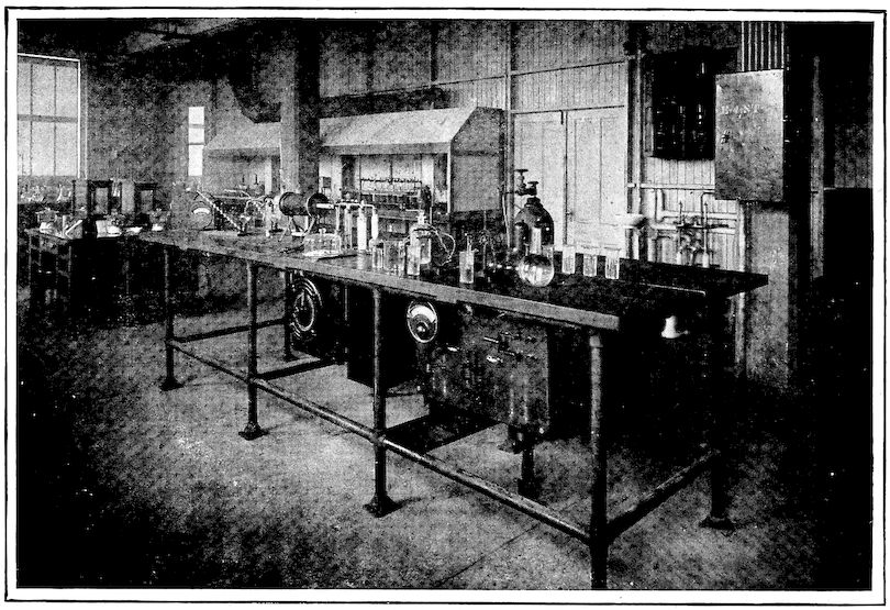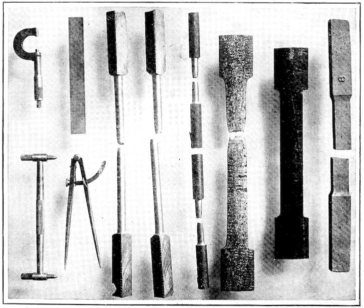 Modern discoveries and inventions, with the great mechanical 9progress of the last three centuries and the scarcely half-century-old application of chemical control, have given during recent years products of great uniformity and marvelous quality. What can compare with thirty thousand pound lots of steel turned out from one Bessemer converter each seventeen minutes during the 24 hours in the day, that is, a total of 1300 tons or 2,600,000 pounds, in which not only the main controlling element, carbon, but also four lesser ones, silicon, manganese, sulphur, and phosphorus, are held within extremely narrow limits; or the modern blast furnace which produces a million pounds each 24 hours, run with the same certainty of control? Modern high-speed steels which are every day being made have such high quality that tools formed from them will stand up for hours working red-hot under a lathe speed of two or three hundred linear feet per minute taking a deep cut and “plowing out” chips faster than a laborer can carry them away.