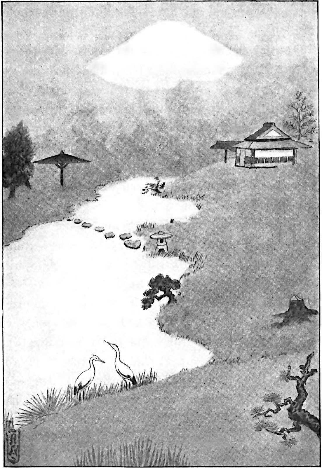 She stroked him gently and set him down, and with great leaps he was off to the bamboo thicket. Then the princess watched with pleasure, for the old foxes received him with joy; they licked him over and over, and then, one on either side the baby fox, they trotted happily away. The princess smiled ’neath the cherry blooms and was glad.