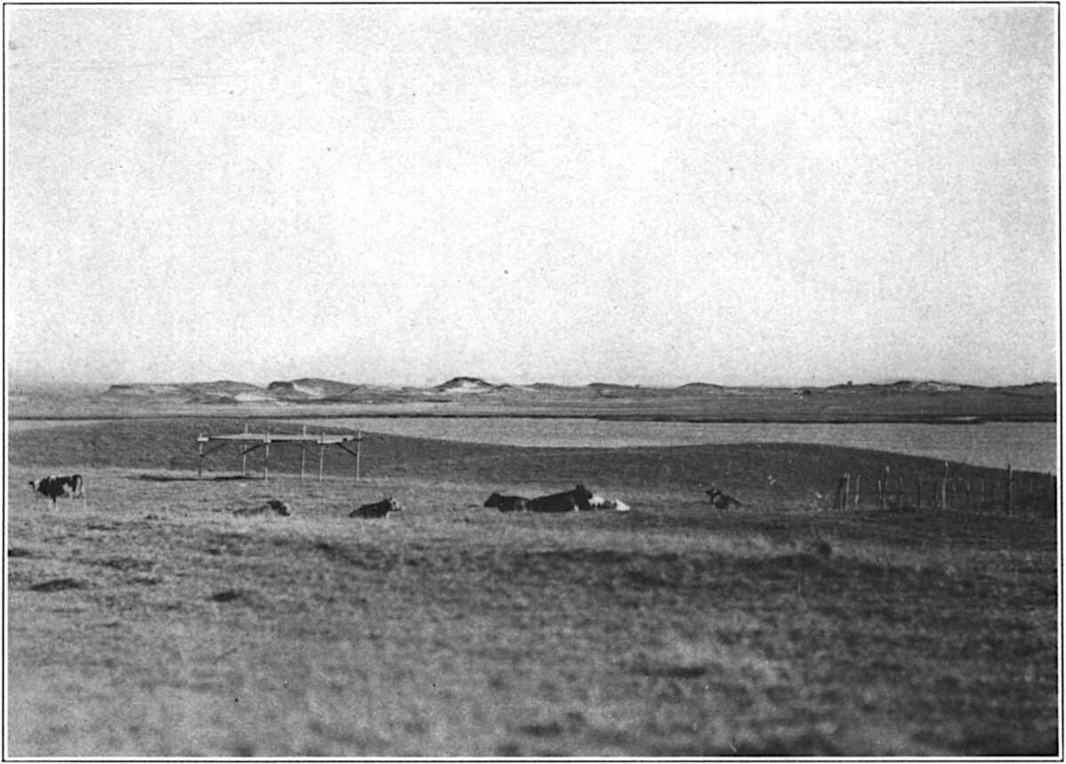 On Monday morning last, as I sat writing at my west windows, I heard a tern give a strange cry, and on looking out and up I saw a bird harrying the female marsh hawk, of whose visits to the dunes I have already told. The sea bird’s battle cry was entirely new to my ear. “Ke’ke’ke’aow!” he cried; there was warning in the harsh, horny cry, danger and anger. The greater bird, flapping her wings as if they were spreads of paper—the winging of this hawk, near earth, is sometimes curiously like the winging of a butterfly—made no answer, but sank to earth slowly, wings outspread, and rested for a long half minute on the shell-strewn floor of the sand pit forty(203) feet back from my house. Thus perched motionless, she might have been a willing mark. Scolding without pause, the tern, who had followed the enemy down into the pit, then rose and dived on her as he might have dived on a fish. The hawk continued to sit motionless. It was an extraordinary scene. Regaining level wing just above the hawk’s head, the tern instantly climbed and dived again. At his third dive, the hawk took off, flying ahead and low across the sand pit. The battle then moved into the dunes, and the last I saw of the affair was the hawk abandoning the hills and flying south unpursued far out over the marsh.