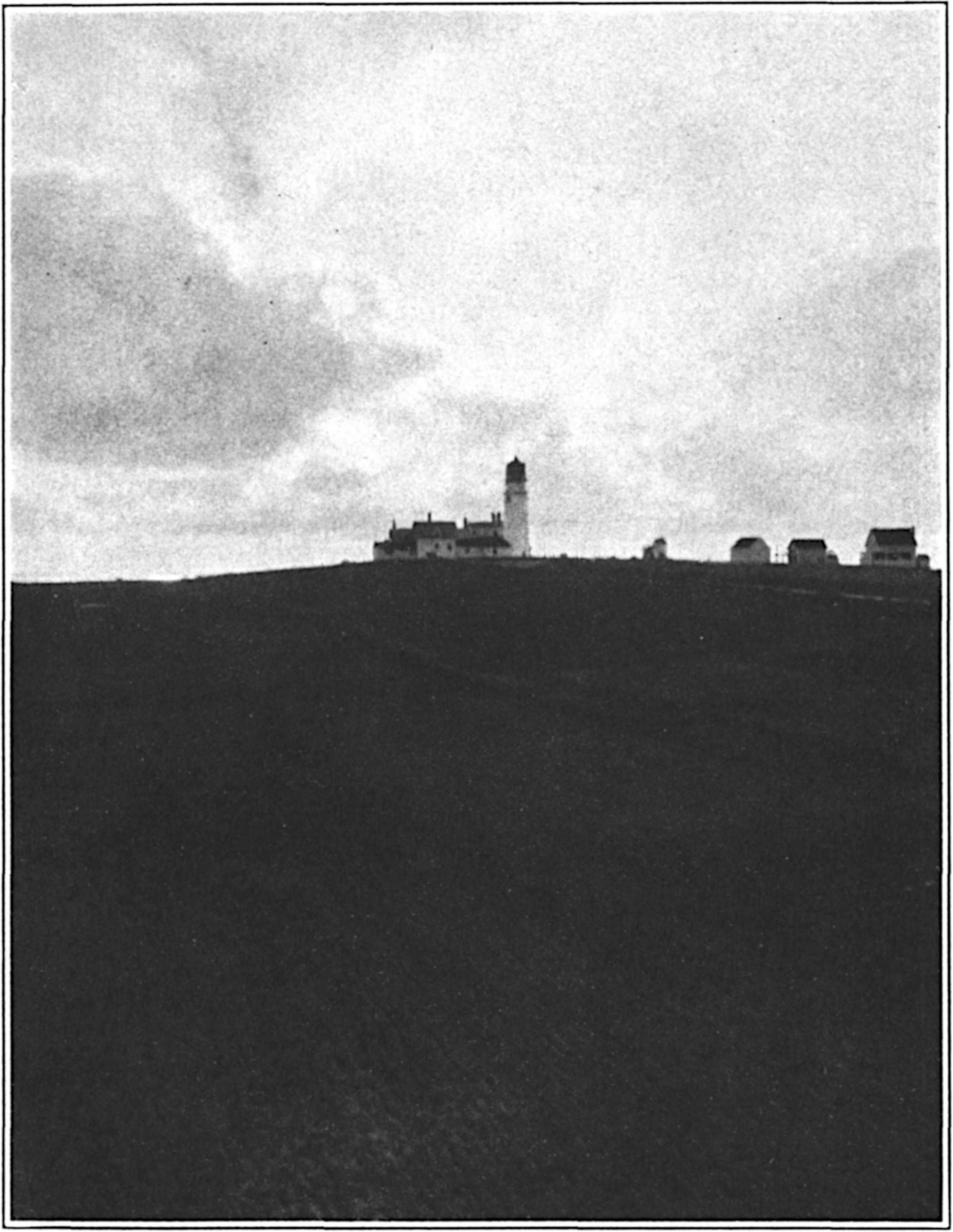 My western windows are most beautiful in early evening. On these lovely, cool September nights the level and quiescent dust of light which fills the sky is as autumnal in its colouring as the earth below. There is autumn on the earth and autumn overhead. The great isles of tawny orange smouldering into darkness, the paths of the channels stilled to twilight bronze, the scarlet meadows deepening to levels of purple and advancing night—all these mount, in exhalation of colour, to the heavens. The beam of Nauset, entering my northern casement, brushes a recurrent pallor of light across a part of my bedroom wall. A first flash, a second flash, a third flash, and then a little interval as the dark sector of the lens travels between the Fo’castle and the flame. On bright moonlit nights, I can see both the whitewashed tower and the light; on dark nights, I can see only the light itself suspended and secure above the earth.