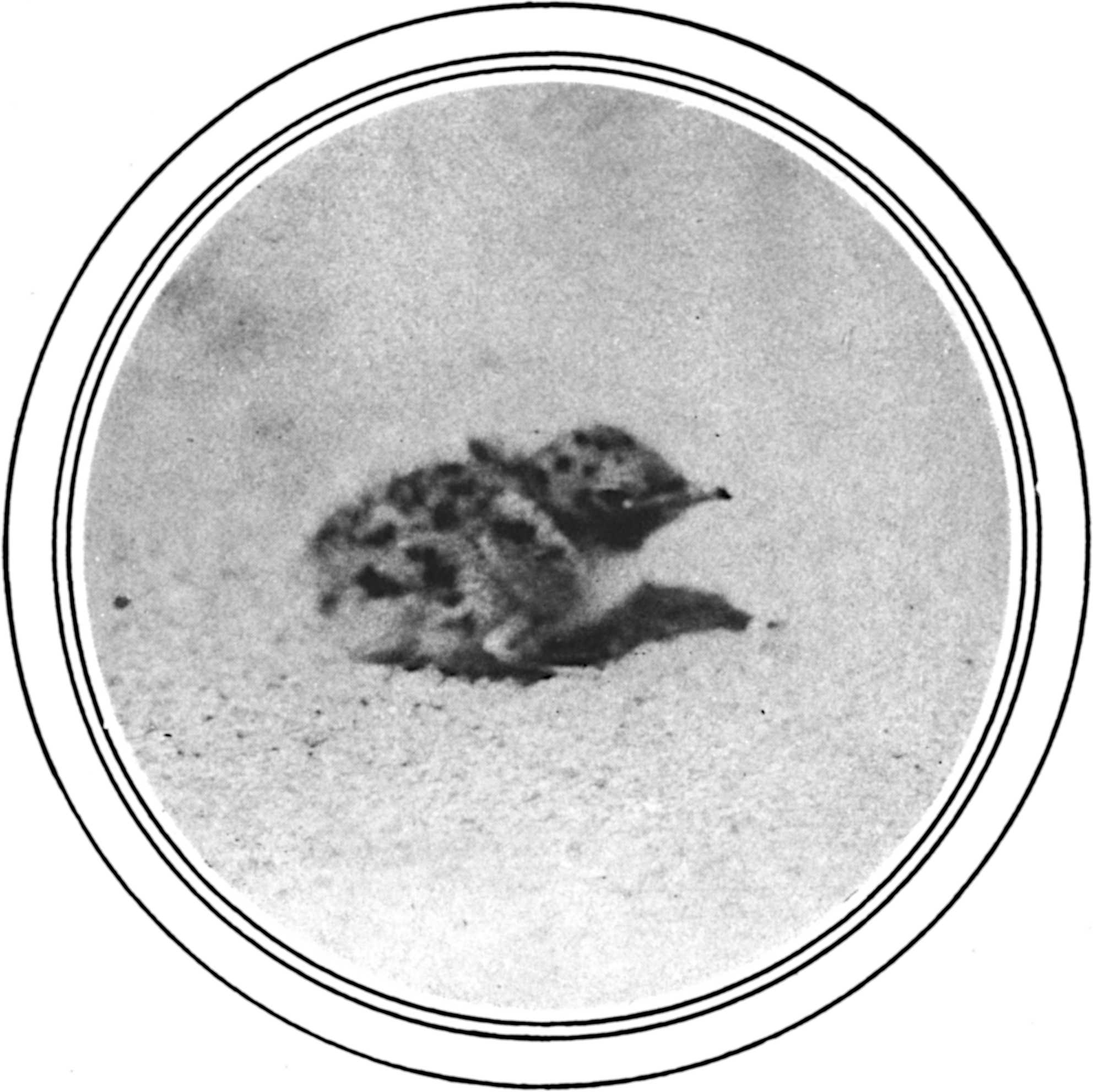 I close this chapter with what seems to me the most interesting detail for a naturalist’s ear. Eastham bar is only three miles long and scarce a quarter of a mile wide across its sands. Yet in this little world Nature has already given her humbler creatures a protective colouration. Stop at the coast guard station and catch a locust on the station lawn—we have the maritime locust here, Trimerotropsis maritima harris—and, having caught him, study him well; you will find him tinted with green. Go fifty feet into the dunes and catch another, and you shall see an insect made of sand. The spiders, too, are made of sand—the phrase is none too strong—and so are the toads that go beach combing on moonlit summer nights. One may stand at the breakers’ edge and study a whole world in one’s hand.