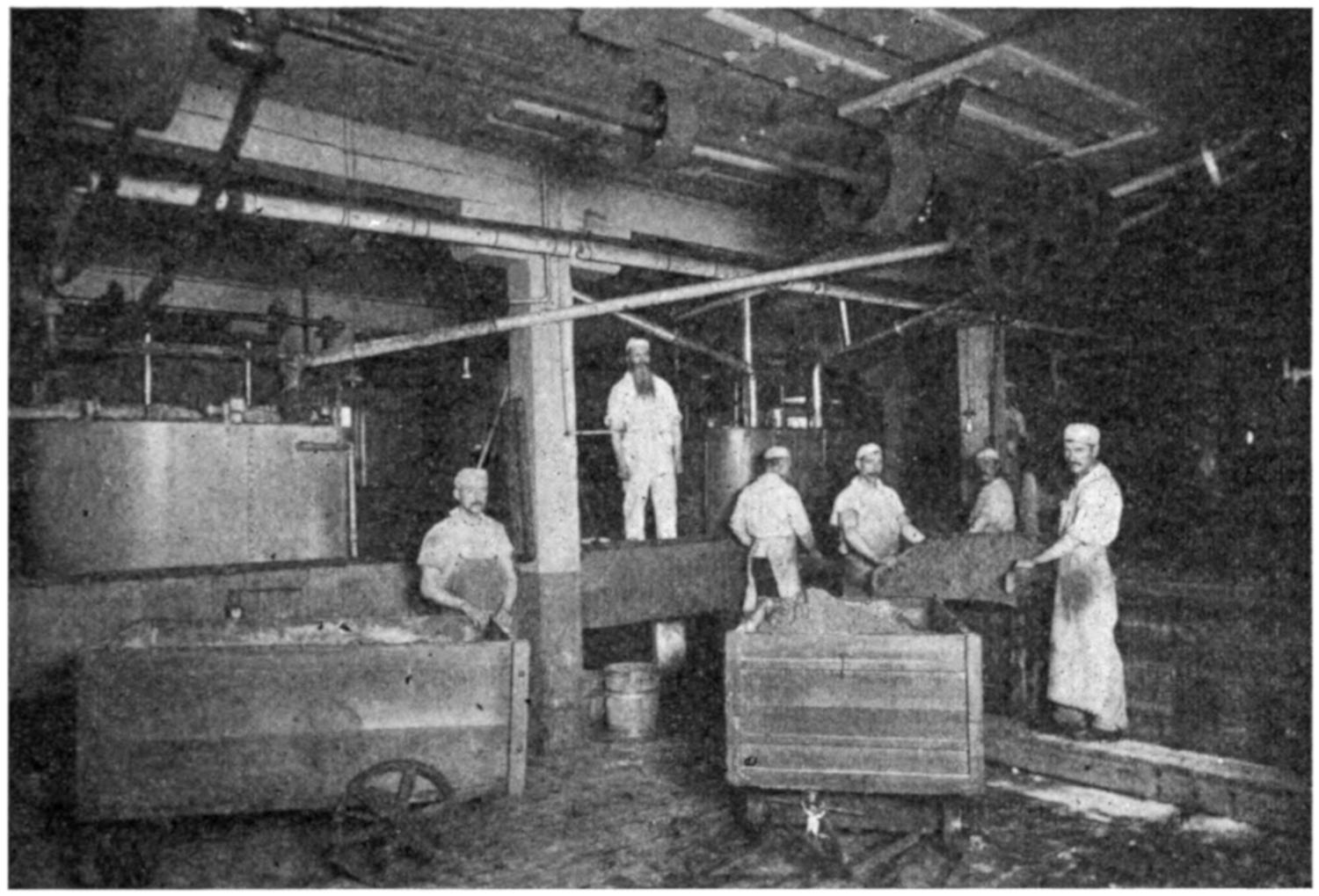 (13) Pork Trimming Room.—This department takes the fats as delivered to them by the hog cutting gang, performs the trimming and assorting of same, delivering the lean trimmings to the sausage or curing departments, and the bones or fat to the lard tanks.