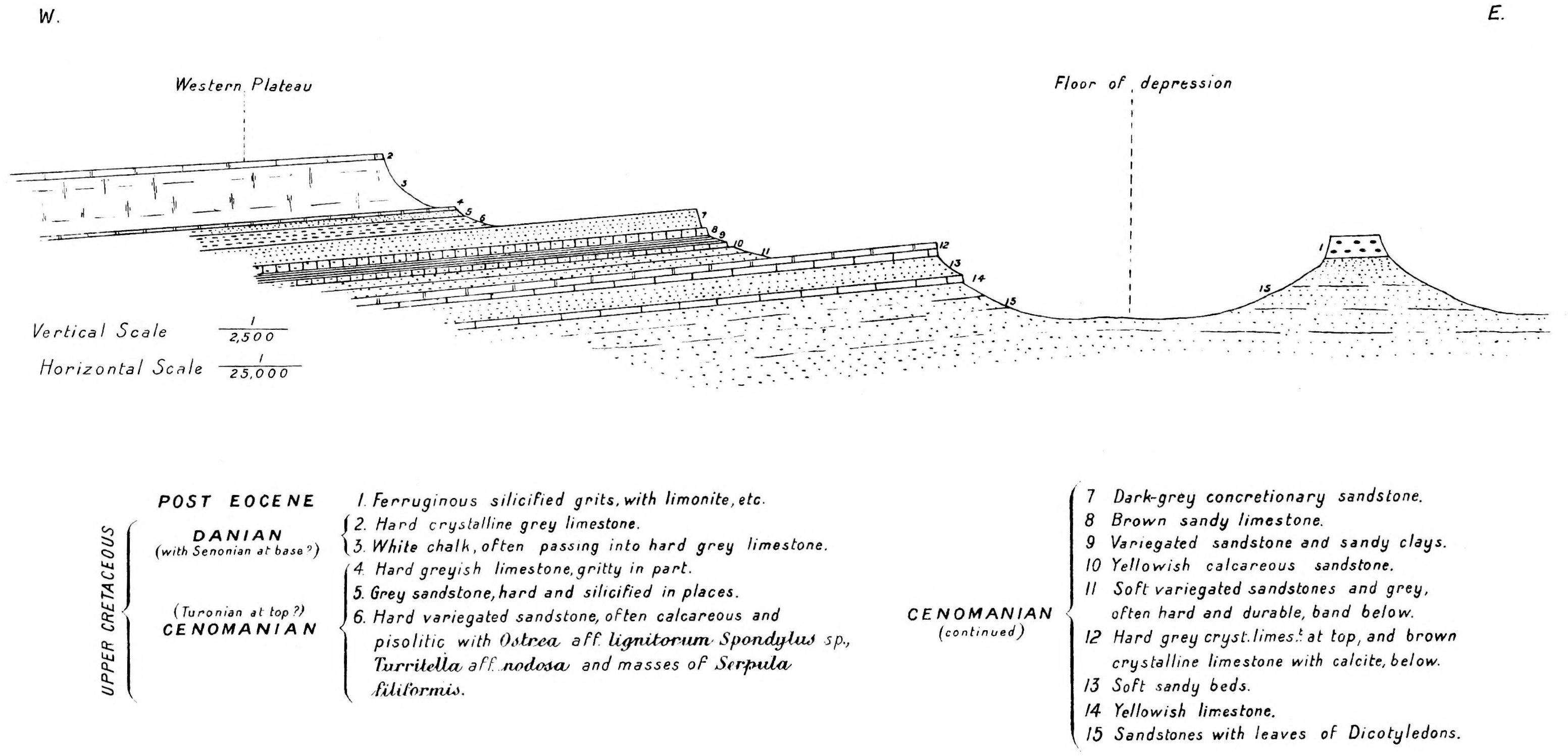 The short memoir by Capt. H. G. Lyons, R.E.,[8] published in 1894, brought together a number of observations on the geology of the Libyan Desert generally, and his discovery of fossils, referred to Exogyra Overwegi, for the first time established the Upper Cretaceous age of the[10] clays and sandstones forming the floor and lower part of the scarp in the northern end of the depression.
