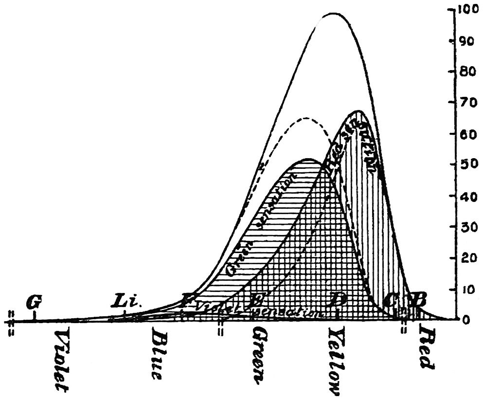 | Luminosity of a Feeble Spectrum and the Limit of the Perception of Colour | 98 |