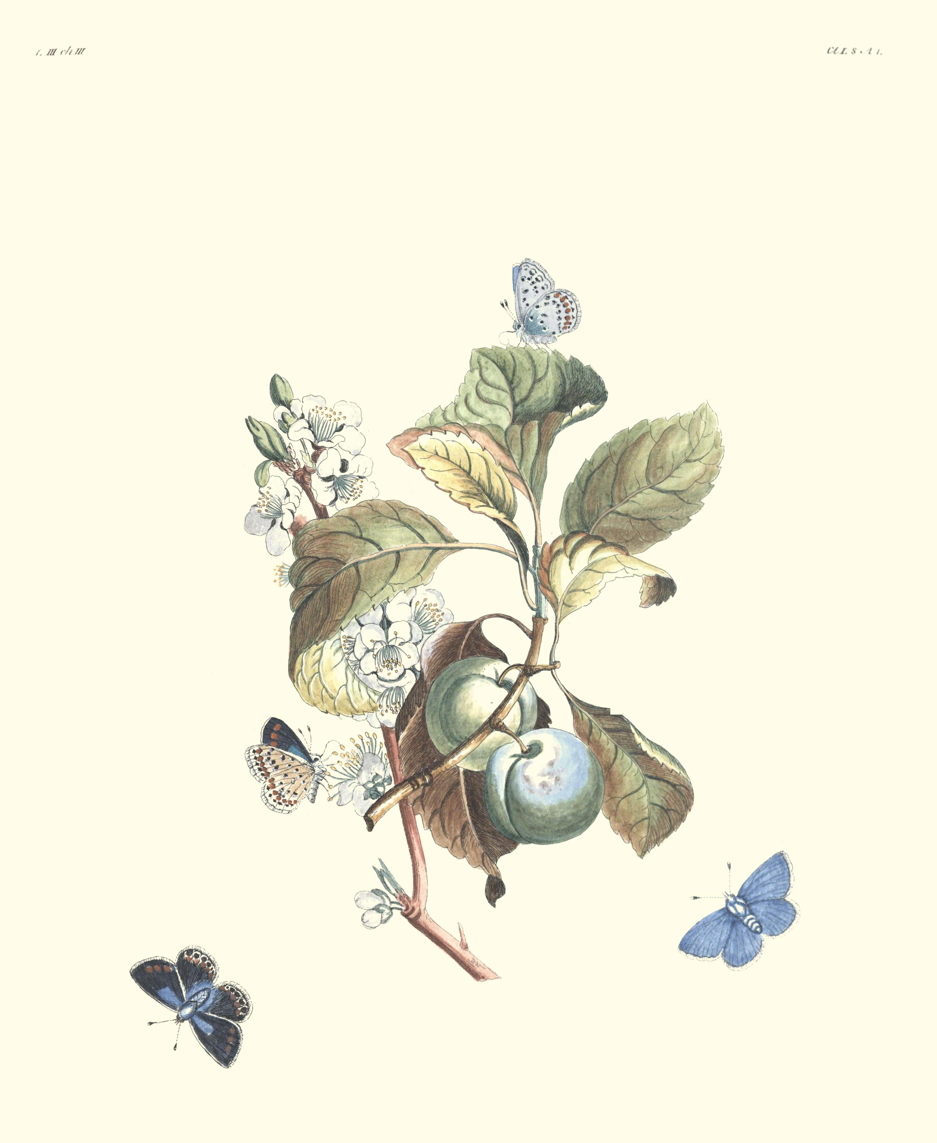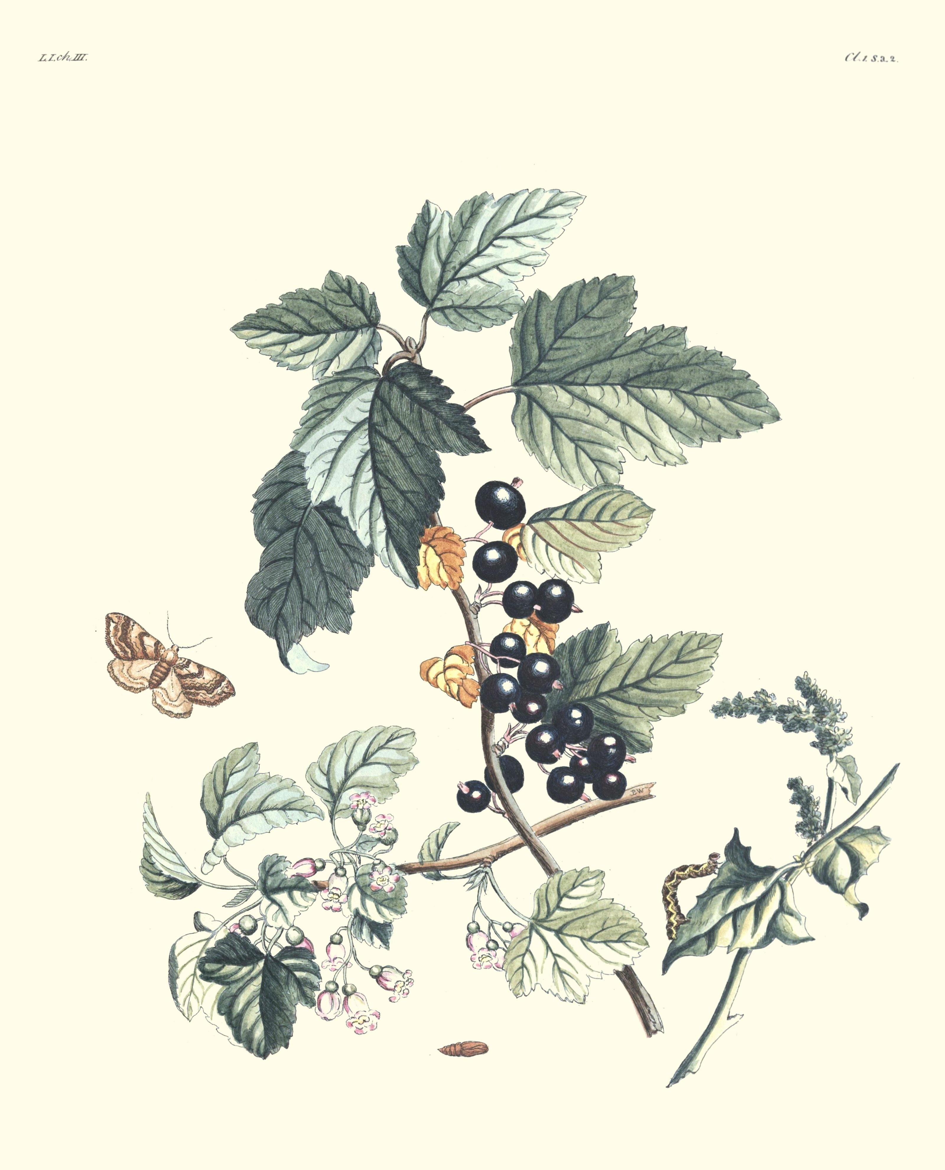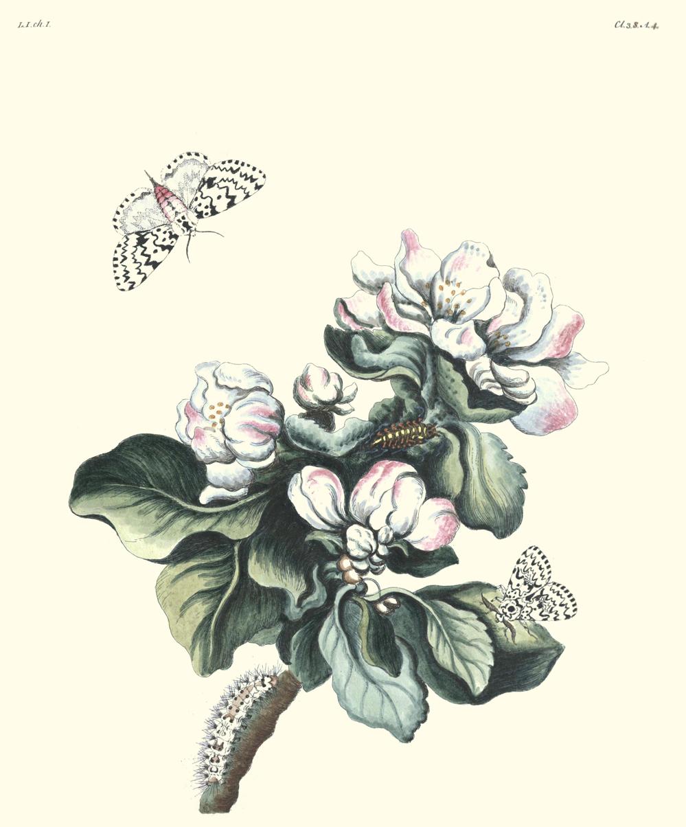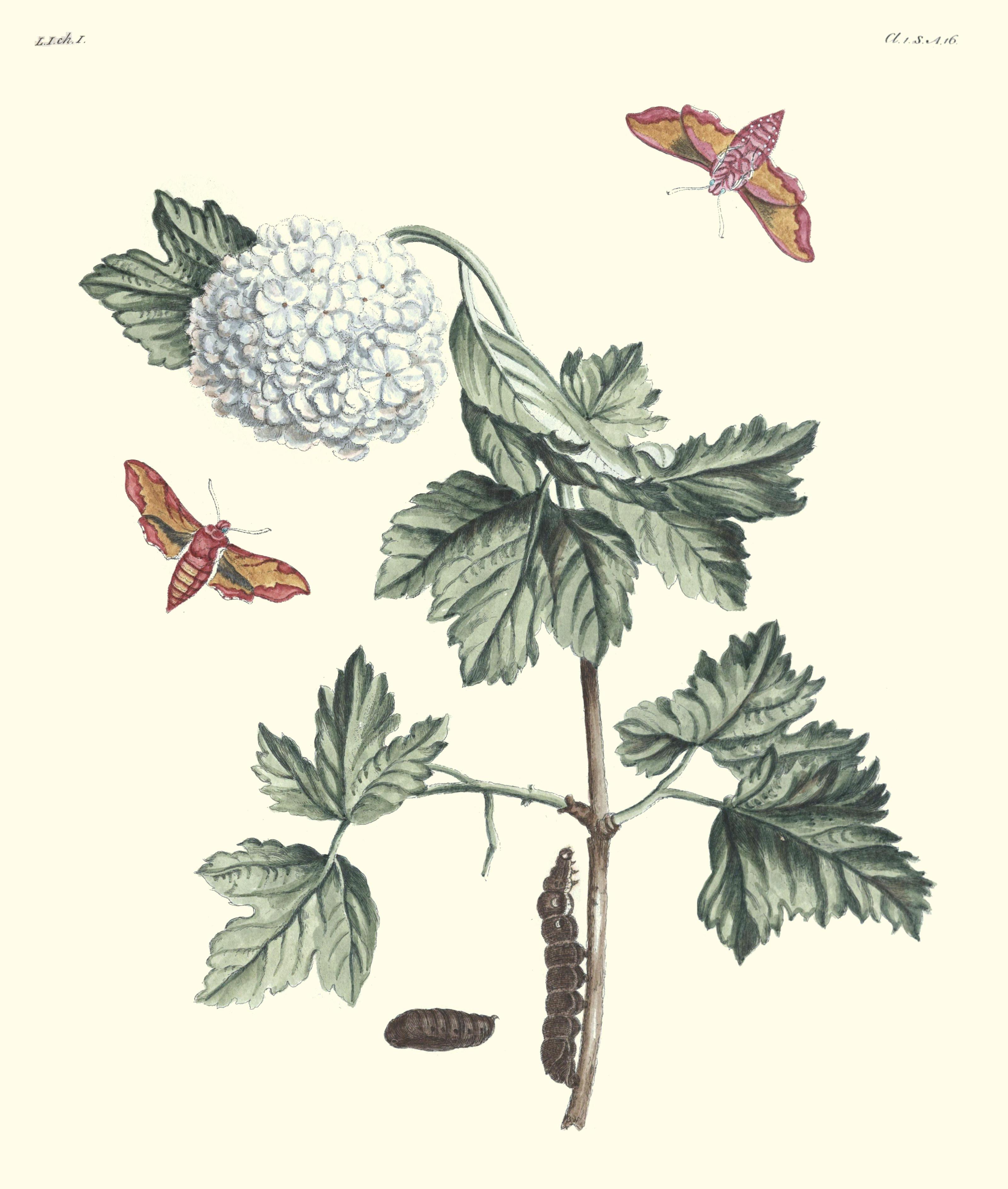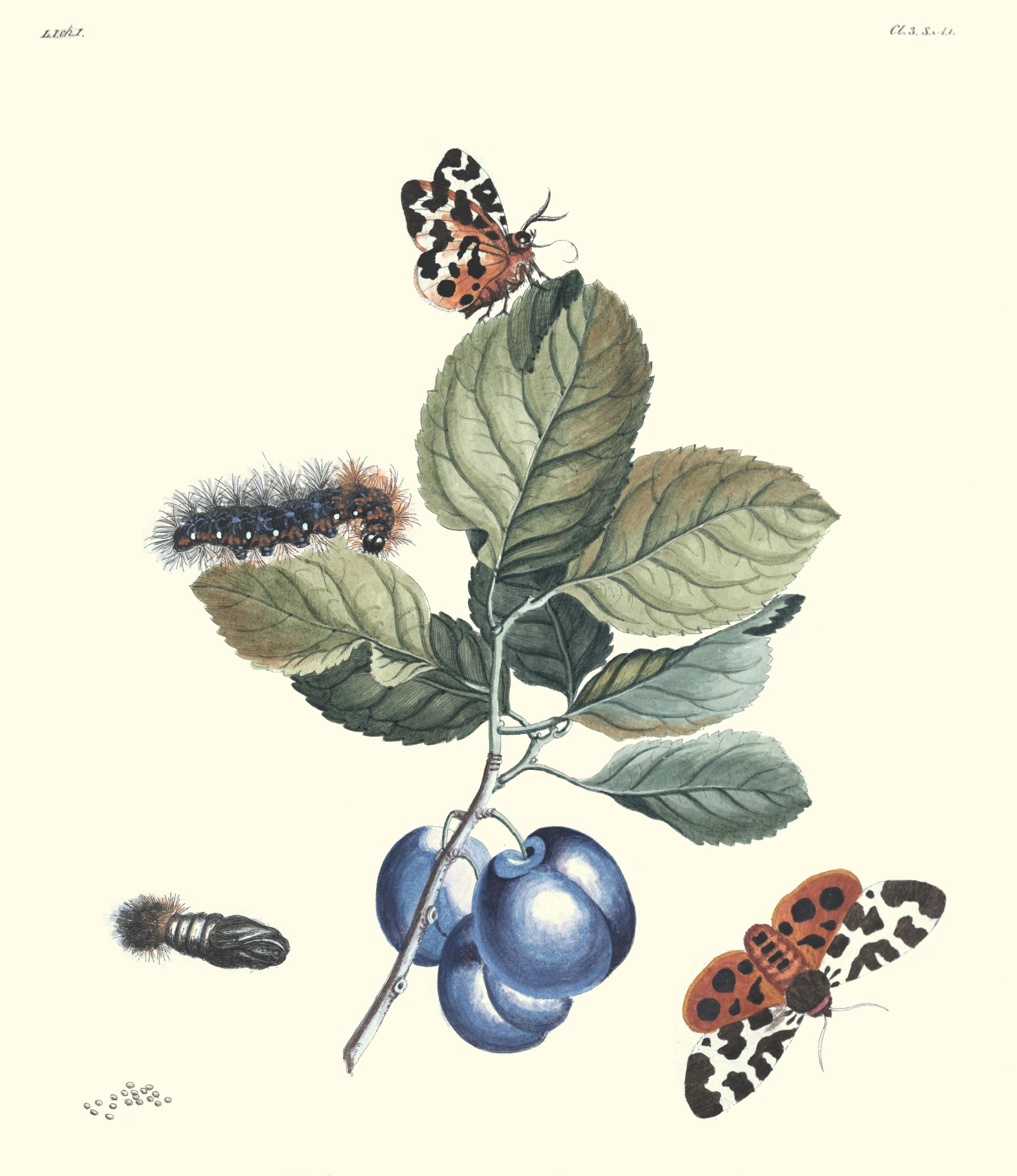 Some Ill-natured People, that love to find Fault with every Thing, have, he hears, objected against the Liberty he has taken, in giving in several of his Plates, Plants, Flowers, and Fruits, that are not in Reality the Food of the Caterpillars therein exhibited; but as the greatest Part of the Caterpillars described in this Work feed chiefly on the Oak, Elm, Black-Thorn, White-Thorn, Willow, and Nettle, all which are separately represented in different Plates, it was judged unnecessary (and would certainly have been tiresom) to repeat those Subjects, as often as different Caterpillars are presented to which they serve for Food: and therefore, instead of so doing, the Author has enriched his Undertaking with some of the most beautiful Productions of Nature in the Vegetable Kingdom: But, however, has not forgot to place the Caterpillars, in most of the Plates, on a small Specimen of the real Plant on which it feeds, as will be properly explained in the Account of each Particular Fly:—and this Care, it is hoped will be an Answer to all unreasonable Cavils.