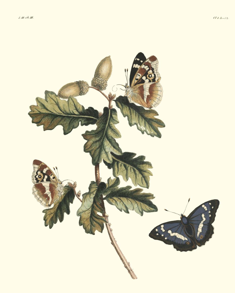 The PURPLE HIGH-FLYER, or Emperor of the Woods. Neither the Caterpillar nor Chrysalis of this charming Fly has been yet discovered, although sought after with the utmost Diligence for several Years past. The Butterfly appears at the End of June and Beginning of July, and may be taken in Comb-Wood in Surry, about Westram in Kent, and in other Places. It flies like a Hawk, delighting to soar aloft and skim in the Air. When it settles it is usually on some extreme Part of the Oak, Hasle, or Ash-Tree: and what is very singular, I myself have seen twenty of them taken on the same Branch one after another, for although the Fly seems to be extremely wild whilst on the Wing, yet, when settled, you may lay your Net over it with little Trouble.