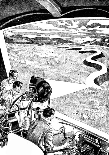 When the ship slanted down in a long graceful glide, to enter the hangar doors that noon, Gale was in control. The controls of the ship were remarkably easy to master and extremely simple. The one thing that was hard to master was the tremendous range of power. It could be changed in a smooth climb from a fraction of a horsepower to billions! The first attempts had been a bit hard on the passengers, the seat straps coming in for their share of use.
