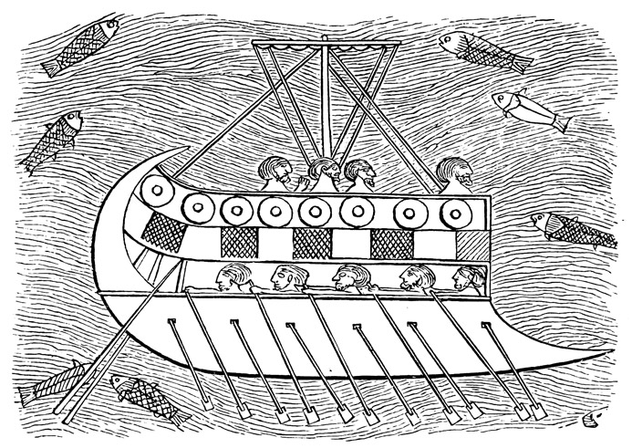 Introductory—The first attempt to float, by means of a hollowed log and raft—The Ark—Boats of skin—Earliest boats or ships—Their form—Mode of construction—Names of ships—Decorations—Launching, &c.—Master—Mate—Boatswain—St. Paul’s ship—Rig and sails—Undergirders—Anchors and cables—Decks—Nautical instruments—Mariner’s compass—Speed of ancient ships.