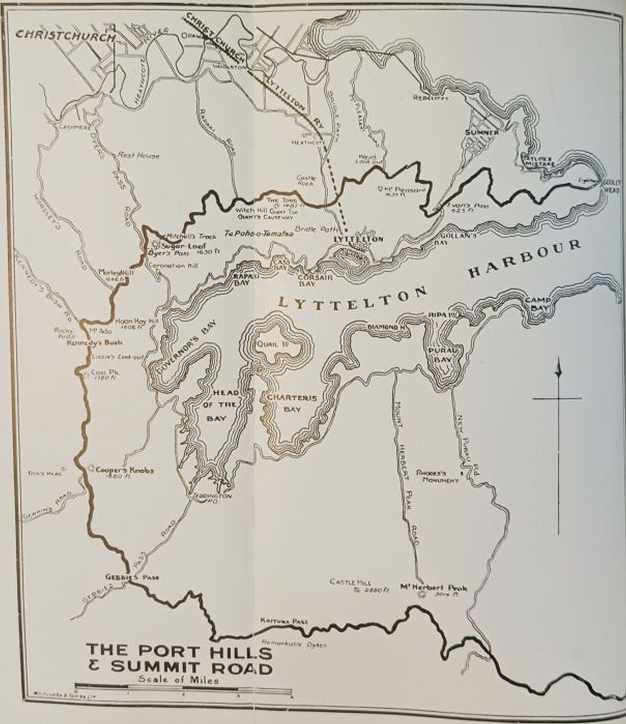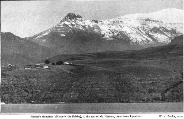 It is the Port Hills’ nomenclature, perhaps, that carries the most poetic suggestions of any of the Canterbury place-names, and here, perhaps, the dwellers on the heights in the days to come when all these Plain-ward-looking slopes are dotted with pretty homes, will seek inspiration in such legendry and history of the soil as we of the present generation have preserved. There are names of dignity and beauty clustered about those old lava-built crags and ruined towers and tors past which the Summit Road goes a thousand feet above the city.