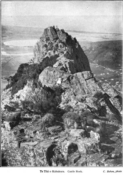 For the priceless gift of free access to these grand tops of the Port Range the people are indebted to the efforts and the gifts of a few public spirited residents, but most of all to the exertions of Mr. H. G. Ell, whose enthusiasm, prescience of vision, and singleness of purpose in developing the Summit Road along this mountain park have properly earned him the admiration and the thanks of thousands of his fellow-citizens who daily lift up their eyes to the Hills and who find on those hills their pleasure and their solace for town-tired body and brain. And maybe if Mr. Ell’s name were bestowed, like Tamatea’s of old, upon one of these monumental crags still unchristened, it would but fittingly preserve the memory of a man whose title to such local honour and fame is certainly greater than that of some of his forerunners whose names the landscape bears.