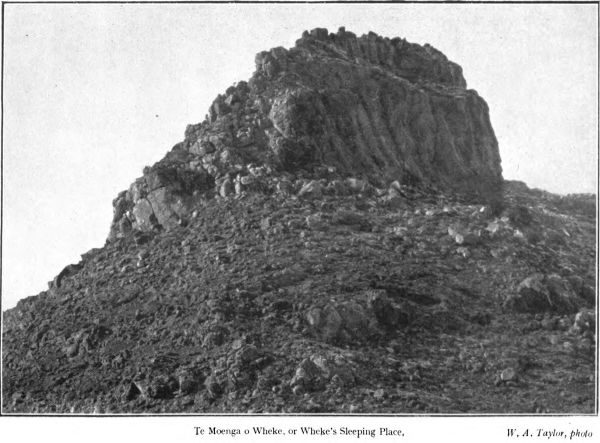 And when the chief left the spot next day to continue his journey he said, “Let this place be called The Place where Tamatea’s Fire-Ashes Lie”; and so to-day the rocky wall which the white man has named the Giant’s Causeway is to the Maori “Te Whaka-takanga-o-te-Karehu-a-Tamatea.” And the volcanic fire itself is “Te Ahi-a-Tamatea.”