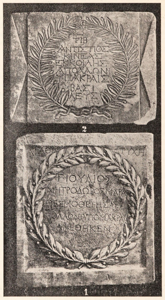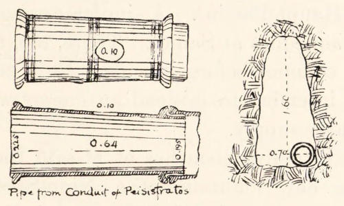| The spring Kallirrhoë. The water-supply of Athens. Geological structure of the Limnae. Site of Kallirrhoë fixed in Pnyx rock. Efforts to reinforce water-supply before time of tyrants. Water-works of the tyrants. Polycrates at Samos. The conduit of Peisistratos from the upper Ilissos to the Pnyx. Comparison with conduit of Polycrates. The great reservoir. The Fountain-House. Water-works of Theagenes at Megara. Analogy between his Fountain-House and Enneakrounos. Evidence of vase-paintings. The central square in front of Enneakrounos. The Panathenaic way. The agora and its development. Argument resumed. pp. 111-136 | |