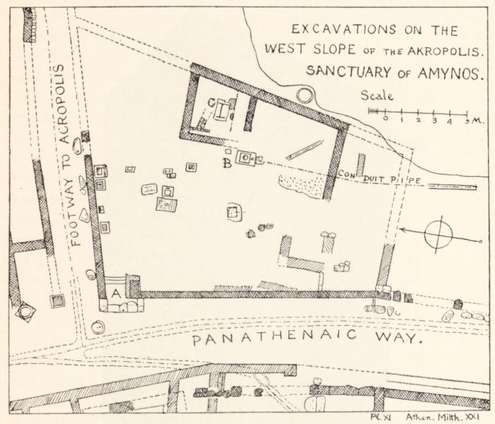 But if he leave that museum aglow with a new enthusiasm, determined to know what is to be known of that antique world, the scholar will assuredly be met on the threshold of his enquiry by difficulties and disillusionment. By difficulties, because the information he seeks is scattered through a mass of foreign periodical literature, German and Greek; by disillusionment, because to the simple questions he wants to ask he can get no clear, straightforward answer. He wants to know what was the nature and extent of the ancient city, did it spread beyond the Acropolis, if so in what direction and how far? what were the primitive sanctuaries inside the Pelasgic walls, what, if any, lay outside and where? Where was the ancient city well (Kallirrhoë), where the agora, where that primitive orchestra on which, before the great theatre was built, dramatic contests took place? Straightway he finds himself plunged into a very cauldron of controversy. The ancient agora is placed by some to the north, by others to the south, by others again to the west. The question of its position is inextricably bound up, he finds to his surprise, with the question as to where lay the Enneakrounos, a fountain with which hitherto he has had no excessive familiarity; the mere mention of the Enneakrounos brings either a heated discussion or, worse, a chilling silence.
