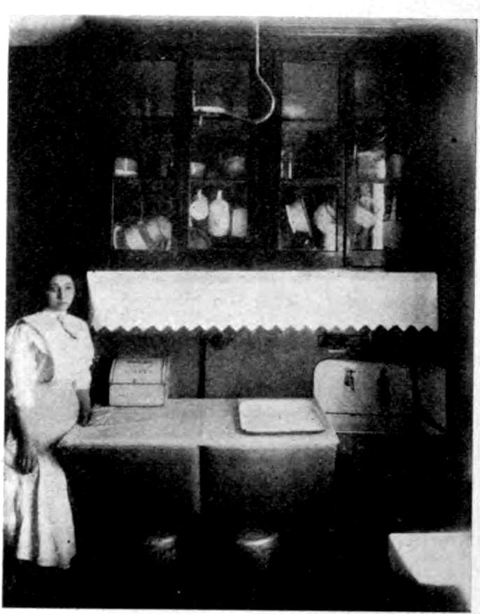 In this four-story semi-circular building, at one of the principal business centers, ample accomodations are provided for a great variety of practical agencies. A café, which paid a profit of $2,400 in three months, shares the front of the ground floor with a large co-operative department store, where dry goods, house furnishings, clothing, meats, groceries, butter and milk, hats, hosiery and shoes are sold. A bakery, with a capacity of 125,000 loaves of bread a week; 205a coal depot, with twenty-nine delivery carts; a laundry, and a clothing manufactory are among the business enterprises conducted here.