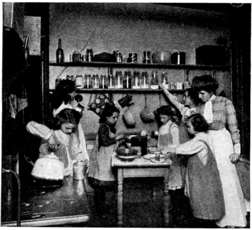 The 19,000 co-operating families receive as their share of the profits 12 per cent of the money they pay for bread, 6 per cent of what their groceries cost them and 5 per cent of the purchase price of their clothing. Among the protective features are an employment bureau for men and women, a pharmacy and a corps of thirteen physicians rendering free service to all members of one year’s standing, and a sick benefit society with 8,000 members. Singing and ethical classes are maintained for children and a well-trained orchestra and choral club for adults. Small halls adequately provide for the meetings of the trade sections, and a great auditorium, seating 2,436 persons, rallies the festival gatherings and supplies room for political mass meetings.