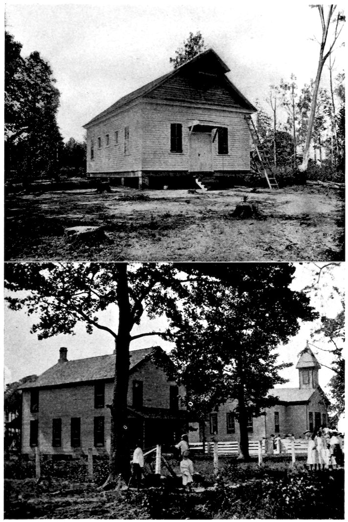 I remember visiting one of these institutions in the backwoods district of one of the Southern States. The school was carried on in an old ramshackle building, which had been erected by the students and the teachers, although it was evident that not one of them had more than the most primitive notion of how to handle a saw or a square.