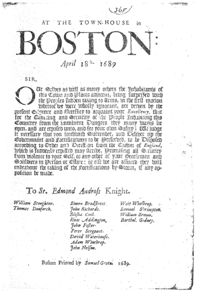 | Demand for Surrender of Sir Edmund Andros | 430 |