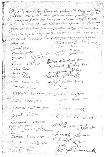 | Testimonial to the good character of Rebecca Nourse, executed as a Witch | 454 |