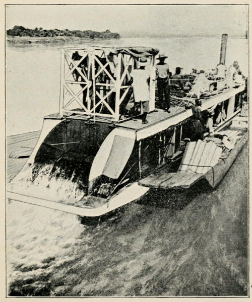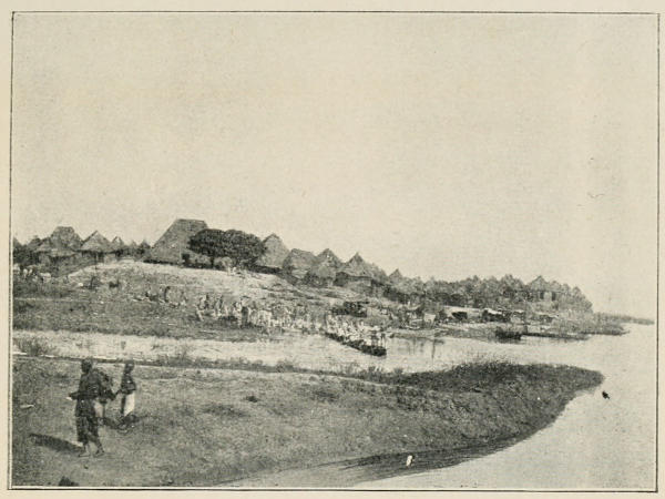I enjoyed every day of that trip; we were a cheery party, and all prepared to make the best of life: as we left the Delta behind, the country became more diversified, little villages appeared on the banks and we were surrounded by tiny canoes,[6] the occupants of which, boys and girls, clamoured loudly in greeting, and fierce competition ensued over the empty tins and bottles flung to them.