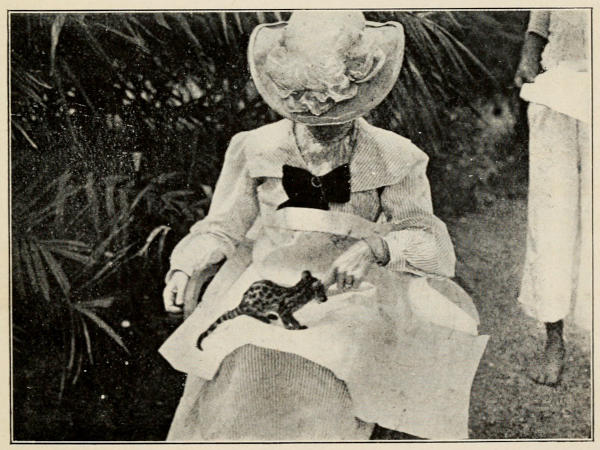 Mosquitoes do not deal more gently with us here than they do elsewhere; all the men wear long loose boots, made in this country, of Hausa leather; they are an absolute protection, and, if somewhat too clumsy for a lady’s wear, as a rule, they are exceedingly useful in camp. For ordinary use, a pair of black canvas gaiters, buttoned and reaching to the knee, can be worn over ordinary evening slippers. They are so neat as not to be noticeable at all, and are an absolute protection when mosquitoes are numerous and hungry.