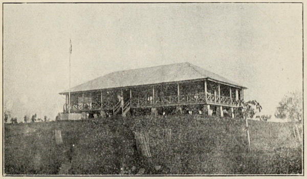 We arrived at Lokoja rather late one evening, and after sleeping that night on the Karonga, the next morning we were most kindly taken in charge by Mr. Gollan, then Chief Justice, who was temporarily filling the place of the last Resident, just invalided home. Mr. Gollan escorted us to our quarters, a massively built double-storeyed stone house, known as the ‘Preperanda,’ which had previously been the Mess-house of the N.N. Regiment, but was now in a very bad state of repair. The rooms below[7] were used as offices, and those above as a dwelling-house. The verandah was in a ruinous condition, and most of the glass had vanished from the doors and windows; even the shutters had fallen off, so that, when the tornadoes came, as they did with annoying frequency, salvation lay in one direction only, to collect all one’s belongings in frantic haste in a heap in the centre of the floor, cover them with waterproof sheets, and sit firmly on them till the storm had spent itself, when the floor could be mopped up, and books, pictures, etc., returned to their places.