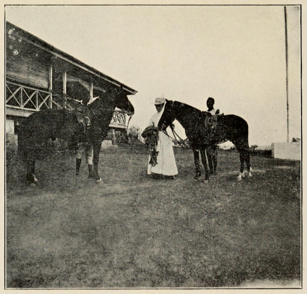 Our first month in Lokoja was, in many ways, a busy one; my husband had his hands only too full of official work, we bought a couple of ponies, and I set to work to organize a stable, realizing sadly in a day or two that the amenities and conveniences of Indian life were not to be found here, any more than inside the house. We made friends, too, with the small community of white people in the station, the nursing sisters, N.N.R. officers and civilian officials, and many were the helping hands and kindly hints given to us, on all sides, and most gratefully received.